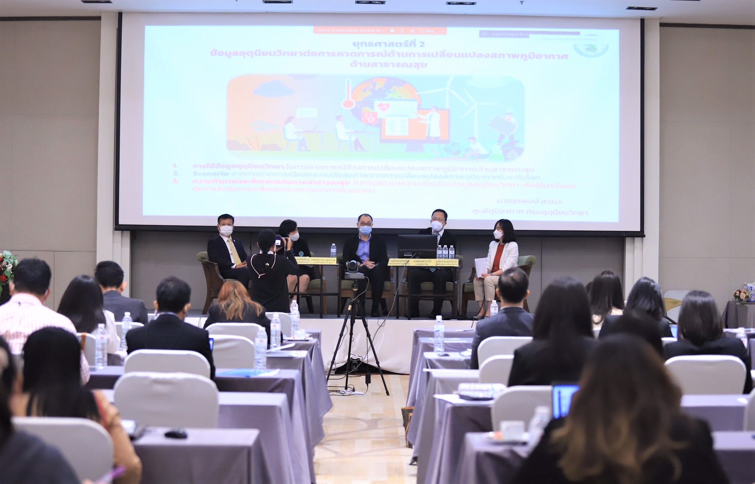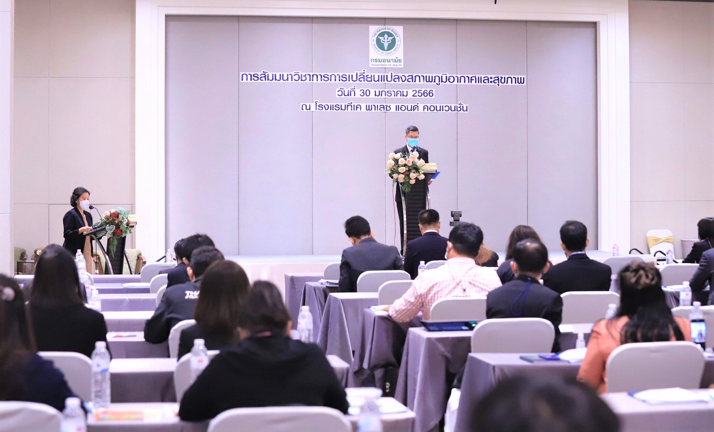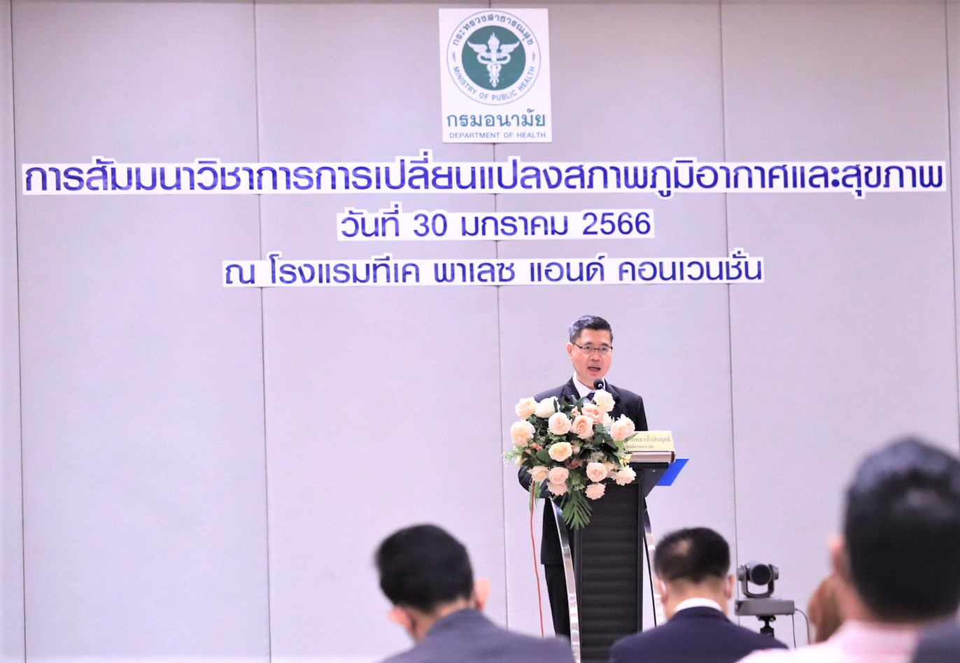 สัมมนาวิชาการการเปลี่ยนแปลงสภาพภูมิอากาศและสุขภาพ ณ โรงแรมทีเค พาเลซ แอนด์ คอนเวนชั่น กรุงเทพมหานคร ว่า Climate Change เป็นปัญหาระดับโลกที่ส่งผลกระทบต่อทุกประเทศและมีแนวโน้มความรุนแรงมากขึ้น โดยองค์การอนามัยโลกคาดการณ์ว่าในปี พ.ศ.2613 จะมีประชาชนไทยกว่า 2.5 ล้านราย ได้รับผลกระทบจากการเปลี่ยนแปลงสภาพภูมิอากาศ ทั้งจากอุณหภูมิที่เพิ่มขึ้น ระดับน้ำทะเลที่สูงขึ้น รวมถึงภัยพิบัติที่รุนแรงและเกิดบ่อยมากขึ้น โดยส่งผลกระทบต่อสุขภาพประชาชนที่ทั้งการป่วยและเสียชีวิตจากภัยพิบัติ โรคจากความร้อน โรคติดต่อนำโดยแมลง โรคระบบทางเดินหายใจ โรคจากอาหารและน้ำเป็นสื่อ เป็นต้น ทั้งยังส่งผลกระทบต่อสถานบริการสาธารณสุข และภาระค่าใช้จ่ายด้านสาธารณสุขที่เพิ่มขึ้น ทั้งนี้ หากประเทศไทยไม่มีการเตรียมการใดๆ เพื่อลดการปล่อยก๊าซเรือนกระจก และไม่มีการเตรียมพร้อมด้านการปรับตัวต่อการเปลี่ยนแปลงสภาพภูมิอากาศ อาจส่งผลกระทบต่อคุณภาพชีวิตและสุขภาพของประชาชนในวงกว้าง และมีแนวโน้มที่จะมีความรุนแรงเพิ่มขึ้น