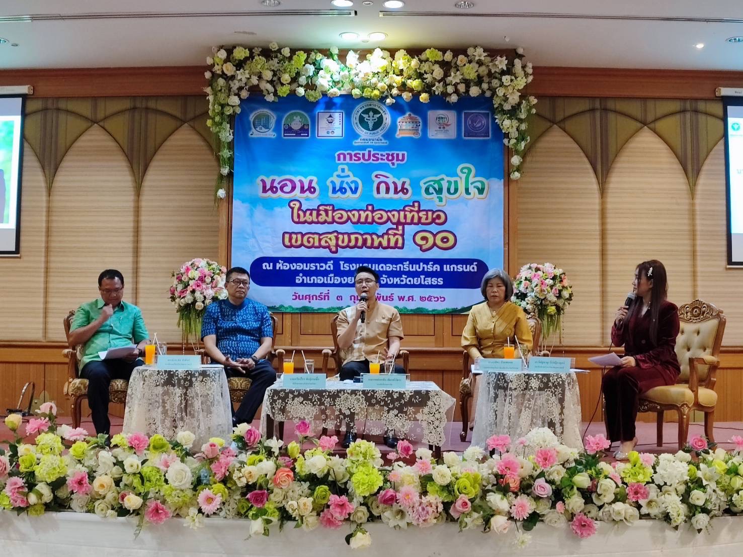 เมื่อวันที่ 3 กุมภาพันธ์ 2566 ที่ผ่านมา นายแพทย์เอกชัย เพียรศรีวัชรา รองอธิบดีกรมอนามัย เปิดการประชุม “นอน นั่ง กิน สุขใจ ในเมืองท่องเที่ยว เขตสุขภาพที่ 10 ”ณ ห้องอมราวดี 1 โรงแรมเดอะกรีนปาร์ค แกรนด์ อำเภอเมือง จังหวัดยโสธร โดยมี นายสุวัฒน์ เข็มเพชร รองผู้ว่าราชการจังหวัดยโสธร กล่าวต้อนรับ นายแพทย์ปกรณ์ ตุงคะเสรีรักษ์ ผู้อำนวยการศูนย์อนามัยที่ 10 กล่าวรายงานการประชุม