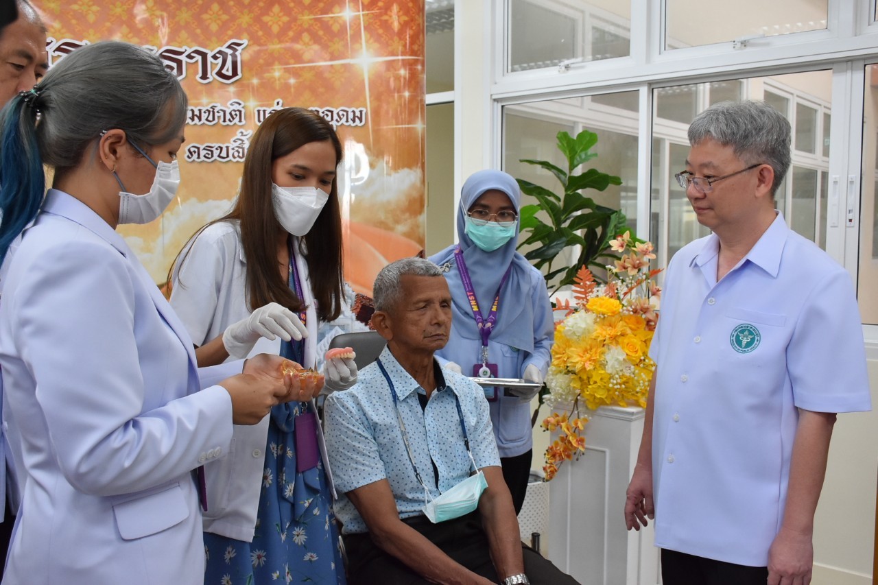 ด้าน นายแพทย์มณเฑียร กล่าวว่า ปัจจุบัน พื้นที่ภาคใต้มีผู้สูงอายุที่สูญเสียฟันทั้งปากถึงร้อยละ 13.2 ซึ่งส่วนหนึ่งเป็นผู้สูงอายุที่สันเหงือกในช่องปากละลายตัว สันเหงือกแบนราบ ทำให้มีปัญหาฟันเทียมไม่กระชับ หลุด หลวม ทำให้ไม่สามารถใช้บดเคี้ยวอาหารได้ จำเป็นต้องผ่าตัดฝังรากฟันเทียมในกระดูกขากรรไกรเพื่อรองรับฟันเทียมทั้งปาก โดยในปีงบประมาณ 2566 ทุกหน่วยบริการในภาคใต้ได้ให้บริการใส่ฟันเทียมทั้งปากหรือเกือบทั้งปากไปแล้ว 1,699 คน ส่วนรากฟันเทียม มีหน่วยบริการที่ขึ้นทะเบียนให้บริการในภาคใต้ 40 แห่ง และได้รับความร่วมมือจากหน่วยทันตกรรมพระราชทาน คณะทันตแพทยศาสตร์ มหาวิทยาลัยสงขลานครินทร์ ร่วมให้บริการฝังรากฟันเทียมในพื้นที่เกาะสมุยและเกาะพะงันด้วย โดยให้บริการฝังรากฟันเทียมแล้ว 157 คน ได้รับการผ่าตัดฝังรากฟันเทียมและอยู่ระหว่างการติดตาม 120 คน และมีผู้ขึ้นทะเบียนรอการฝังรากฟันเทียมอีก 110 คน