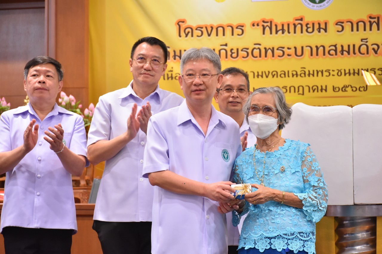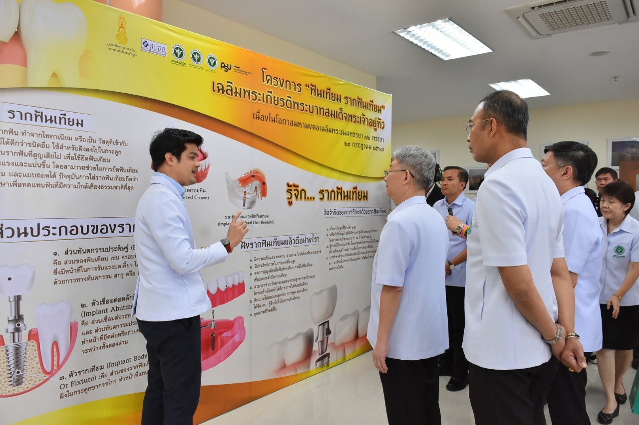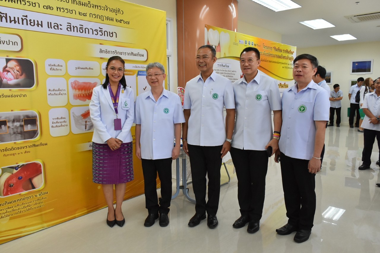 วันนี้ (21 กรกฎาคม 2566) ที่ โรงพยาบาลมหาราชนครศรีธรรมราช จังหวัดนครศรีธรรมราช นายแพทย์โอภาส การย์กวินพงศ์ ปลัดกระทรวงสาธารณสุข เป็นประธานเปิดโครงการรณรงค์ฟันเทียม รากฟันเทียม เฉลิมพระเกียรติพระบาทสมเด็จพระเจ้าอยู่หัว เนื่องในโอกาสมหามงคลเฉลิมพระชนมพรรษา 72 พรรษา 28 กรกฎาคม 2567 โดยมี นายแพทย์พงศ์เกษม ไข่มุกด์ รองปลัดกระทรวงสาธารณสุข นายแพทย์มณเฑียร คณาสวัสดิ์ รองอธิบดีกรมอนามัย ผู้บริหารกระทรวงสาธารณสุข สำนักงานหลักประกันสุขภาพแห่งชาติ เขต 11 และ 12 คณะทันตแพทยศาสตร์ มหาวิทยาลัยสงขลานครินทร์ ทันตบุคลากร ภาคีเครือข่ายที่เกี่ยวข้องและประชาชนทั่วไป ร่วมงานกว่า 400 คน กิจกรรมภายในงาน อาทิ การคัดกรองสุขภาพช่องปาก นิทรรศการ การให้ความรู้เรื่องสุขภาพช่องปาก และการถ่ายทอดประสบการณ์จริงจากผู้สูงอายุที่เคยฝังรากฟันเทียม เป็นต้น