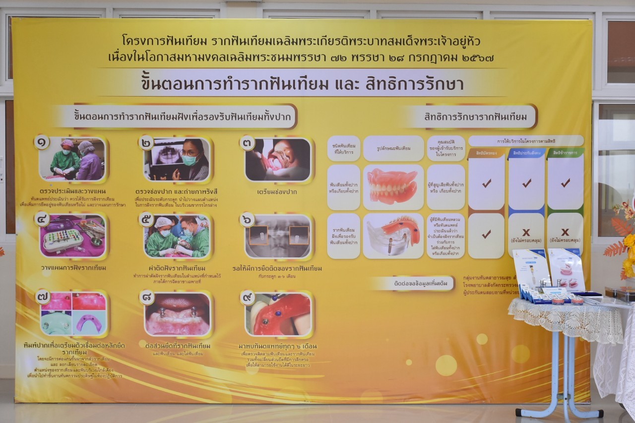 กระทรวงสาธารณสุข โดย ศูนย์อนามัยที่ 11 นครศรีธรรมราช จัดโครงการรณรงค์ฟันเทียม รากฟันเทียม เฉลิมพระเกียรติพระบาทสมเด็จพระเจ้าอยู่หัว เนื่องในโอกาสมหามงคลเฉลิมพระชนมพรรษา 72 พรรษา ดูแลสุขภาพช่องปากให้กับผู้สูงอายุในพื้นที่ภาคใต้ ซึ่งมีปัญหาสูญเสียฟันทั้งปากถึงร้อยละ 13.2 สูงสุดในประเทศ ช่วยเพิ่มการเข้าถึงบริการ ยกระดับคุณภาพชีวิตให้ดีขึ้น