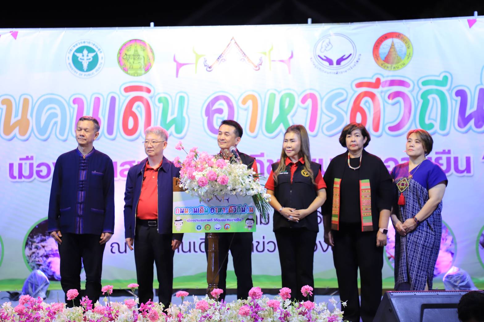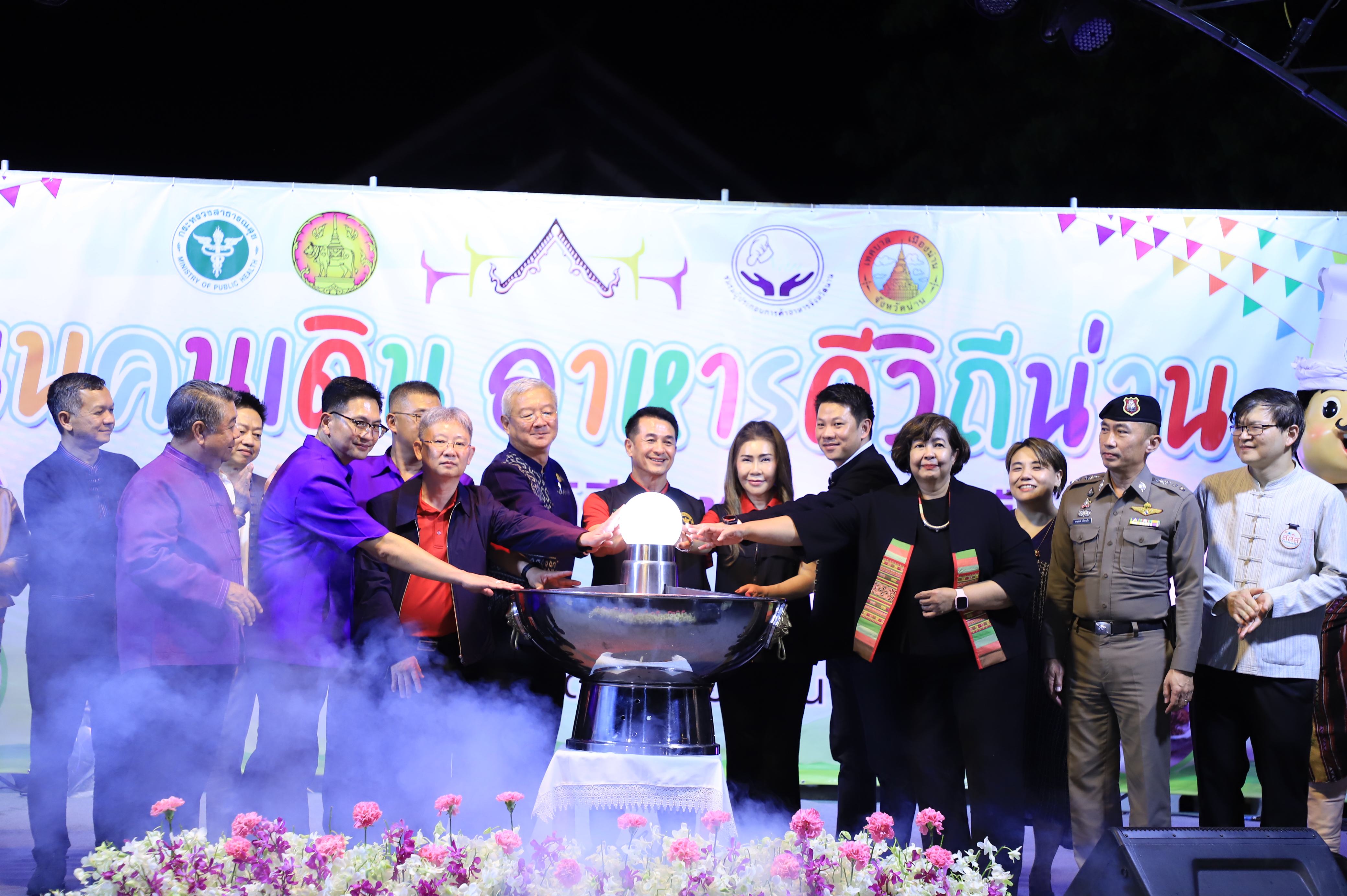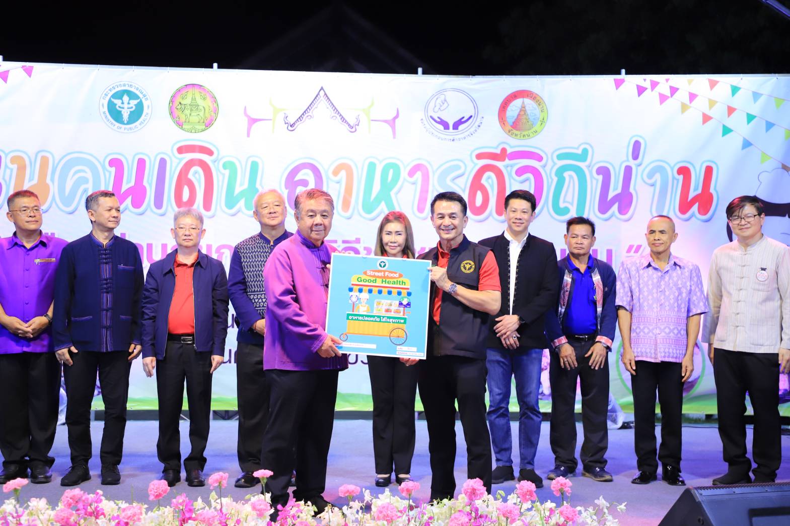 วันนี้ (27 ตุลาคม 2566) นายแพทย์ชลน่าน ศรีแก้ว รัฐมนตรีว่าการกระทรวงสาธารณสุข นายแพทย์โอภาส การย์กวินพงศ์ ปลัดกระทรวงสาธารณสุข แพทย์หญิงอัจฉรา นิธิอภิญญาสกุล รักษาราชการแทนอธิบดีกรมอนามัย พร้อมด้วยผู้บริหารกระทรวงสาธารณสุข ผู้ตรวจราชการกระทรวงสาธารณสุข ผู้บริหารกรมอนามัย สำนักงานสาธารณสุขจังหวัด และเจ้าหน้าที่สาธารณสุขในพื้นที่ร่วมงาน อาหารดีวิถีน่าน พร้อมมอบป้าย Street Food Good Health “อาหารปลอดภัย ใส่ใจสุขภาพ” เพื่อสร้างความเชื่อมั่นนักท่องเที่ยวคนไทยและต่างชาติ ตามนโยบาย “น่านโมเดล” ณ ถนนคนเดิน กาดข่วงเมืองน่าน (วัดภูมินทร์) อำเภอเมือง จังหวัดน่าน