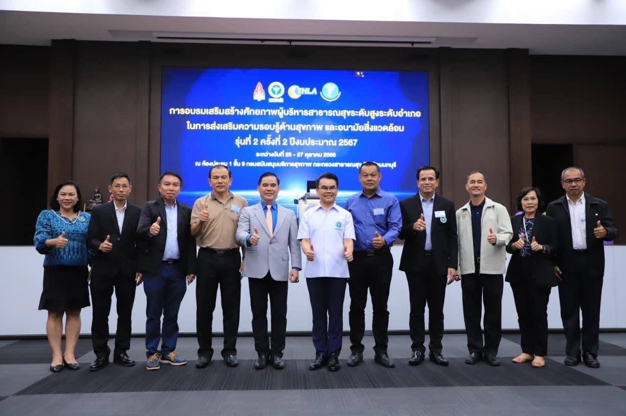 กรมอนามัย กระทรวงสาธารณสุข ร่วมกับคณะสาธารณสุขศาสตร์ มหาวิทยาลัยขอนแก่น ชมรมสาธารณสุข และวิทยากรผู้ทรงคุณวุฒิทั่วประเทศ เคลื่อนสาธารณสุขอำเภอรอบรู้ต่อเนื่อง รองรับการดำเนินงานอำเภอสุขภาพดีในการอบรมเสริมสร้างศักยภาพผู้บริหารสาธารณสุขระดับสูงระดับอำเภอในการส่งเสริมความรอบรู้ด้านสุขภาพและอนามัยสิ่งแวดล้อม รุ่น 2 ครั้งที่ 2 โดยได้รับเกียรติจาก พลโท ดร.โสภณ ศิริงาม อดีตเสนาธิการ สถาบันวิชาการป้องกันประเทศ กองบัญชาการกองทัพไทย นายมณเฑียร เจริญผล รองผู้ว่าการตรวจเงินแผ่นดิน ศ.พิเศษ ดร.นพ.วิชัย เทียนถาวร อธิการบดีสถาบันพระบรมราชชนก ดร. นายแพทย์สราวุฒิ บุญสุข รองอธิบดีกรมอนามัย นายแพทย์ศักดิ์ชัย กาญจนวัฒนา ผู้ทรงคุณวุฒิ สำนักงานหลักประกันสุขภาพแห่งชาติ (สปสช.) นายแพทย์วิชาญ บุญกิติกร ผู้อำนวยการโรคติดต่อทั่วไป กรมควบคุมโรค นายแพทย์อภิสรรค์ บุญประดับ ผู้อำนวยการสำนักสนับสนุนระบบปฐมภูมิ สำนักงานปลัดกระทรวงสาธารณสุข และนายแพทย์โสภณ เอี่ยมศริถาวร รองอธิบดีกรมควบคุมโรค ร่วมบรรยาย เมื่อวันที่ 25-27 ตุลาคม 2566 ณ กรมสนับสนุนบริการสุขภาพ กระทรวงสาธารณสุข