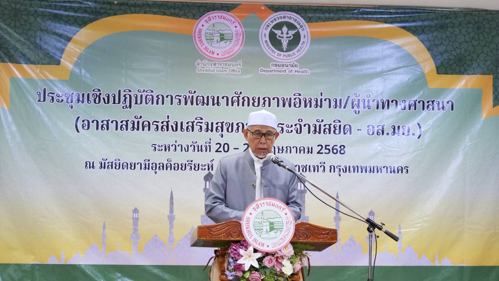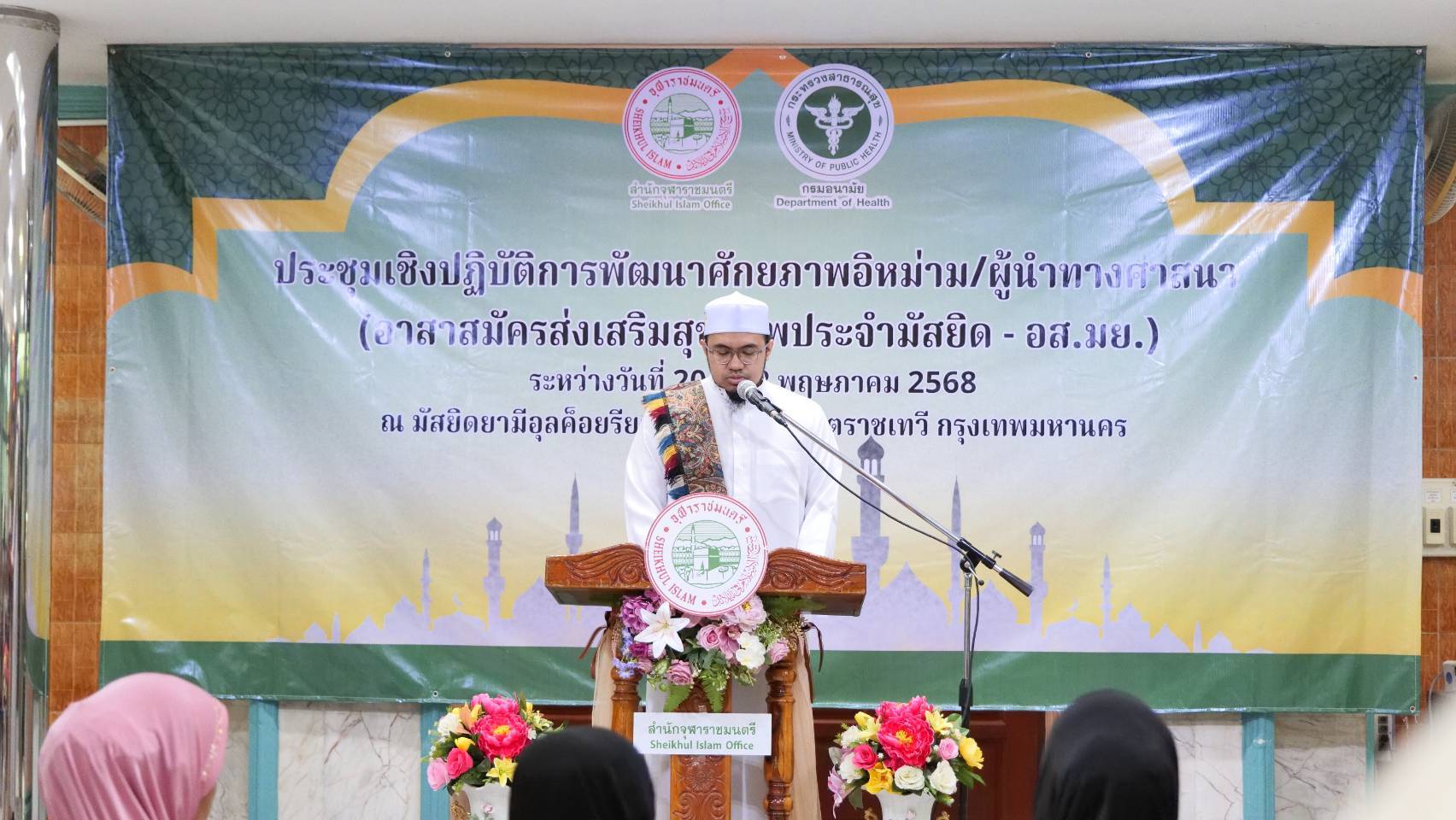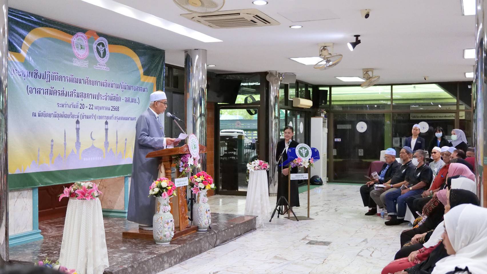 วันนี้ (20 พฤษภาคม 2568) นายอับดุลเลาะ หนุ่มสุข รองประธานคณะผู้ทรงคุณวุฒิจุฬาราชมนตรี เป็นประธานพิธีเปิดการจัดประชุมเชิงปฏิบัติการพัฒนาศักยภาพอิหม่าม/ ผู้นำทางศาสนา (อาสาสมัครส่งเสริมสุขภาพประจำมัสยิด - อส.มย.) พร้อมด้วยแพทย์หญิงนงนุช ภัทรอนันตนพ รองอธิบดีกรมอนามัย ผู้บริหารกรมอนามัย และอิหม่าม/ผู้นำทางศาสนา ร่วมงาน ณ มัสยิดยามีอุลค็อยรียะห์ (บ้านครัว) เขตราชเทวี กรุงเทพมหานคร