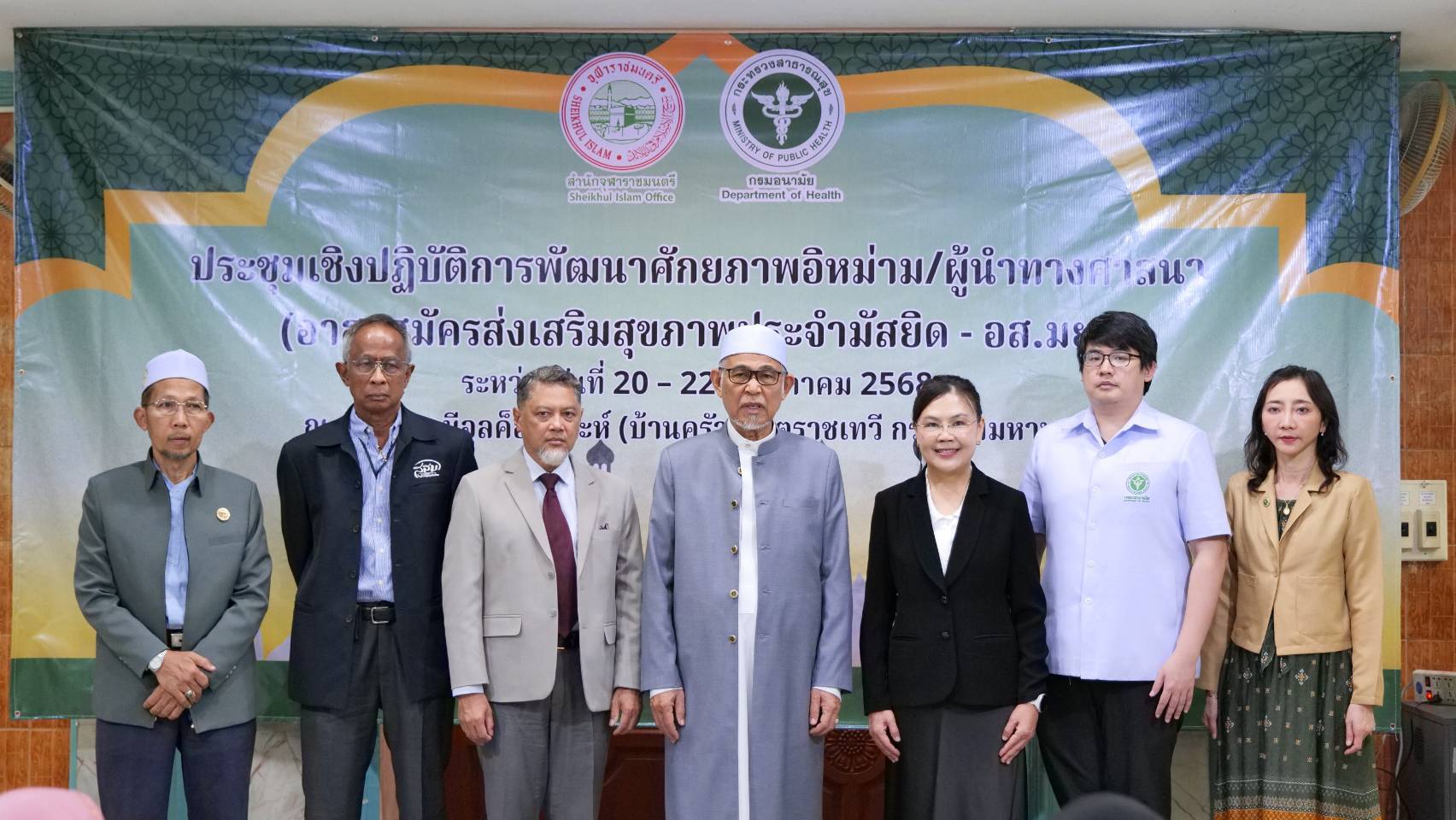 “ทั้งนี้ กรมอนามัยจึงได้จัดการประชุมเชิงปฏิบัติการพัฒนาศักยภาพอิหม่าม/ผู้นำทางศาสนา (อาสาสมัครส่งเสริมสุขภาพประจำมัสยิด–อส.มย.) ระหว่างวันที่ 20-22 พฤษภาคม 2568 เพื่อเพิ่มศักยภาพ