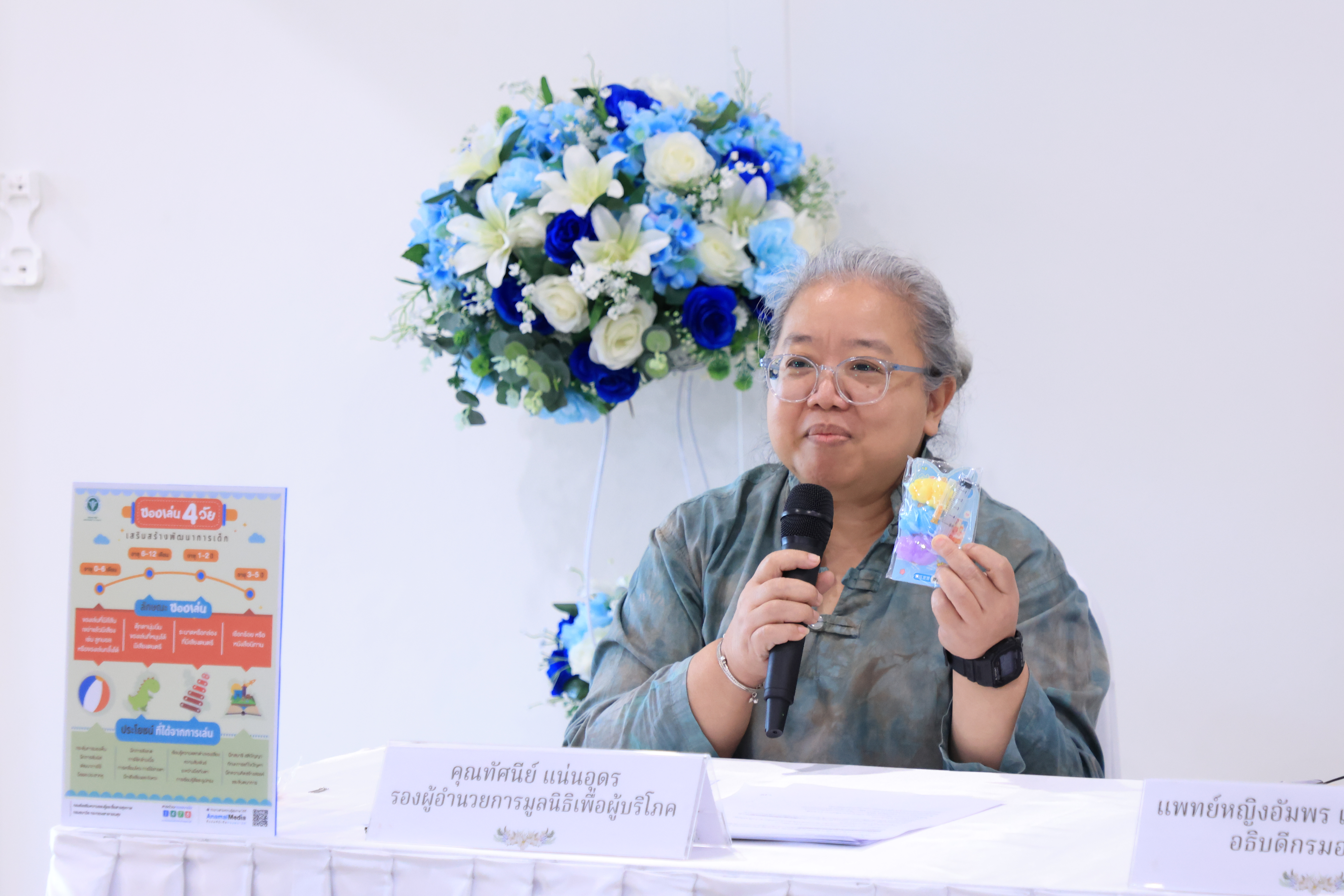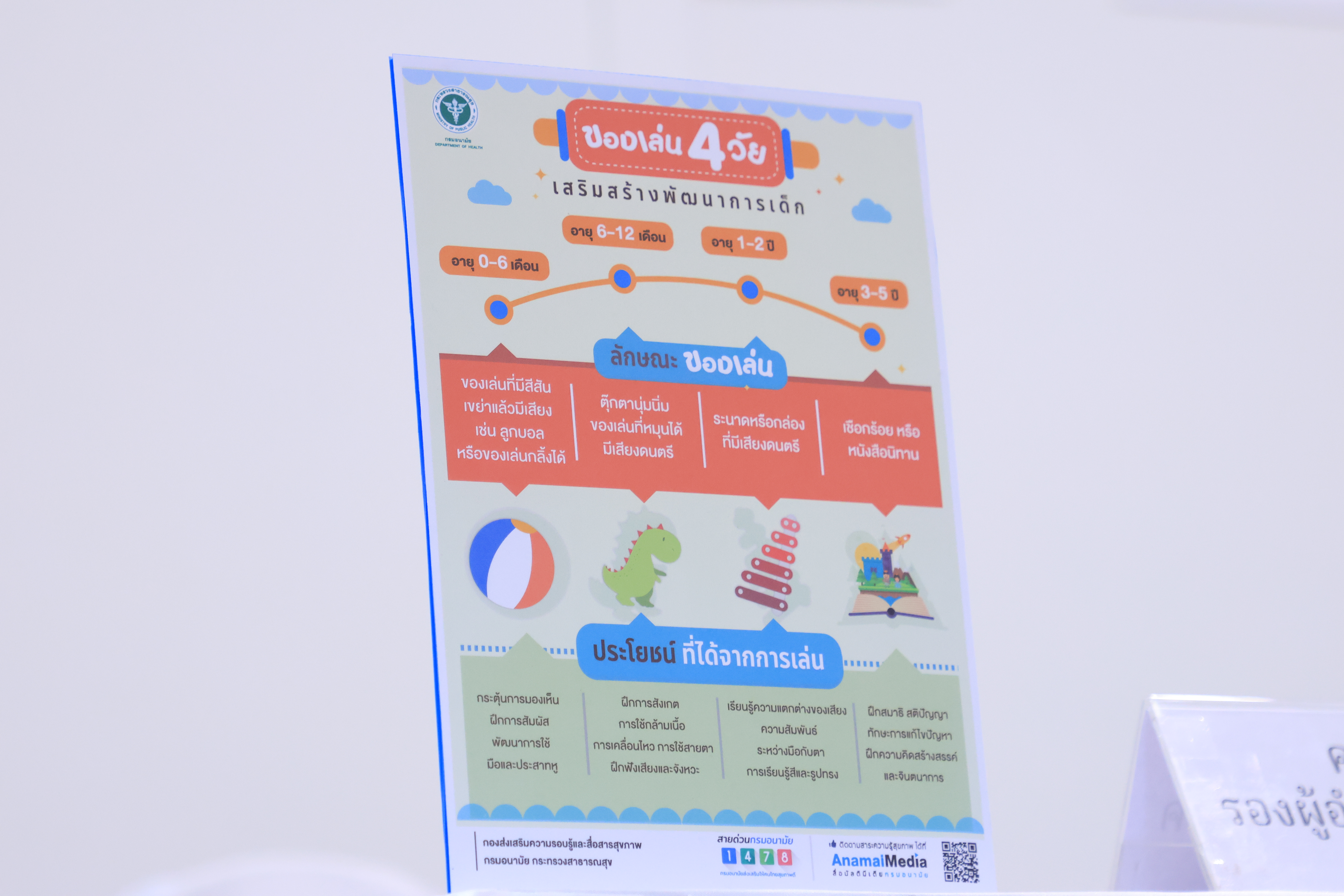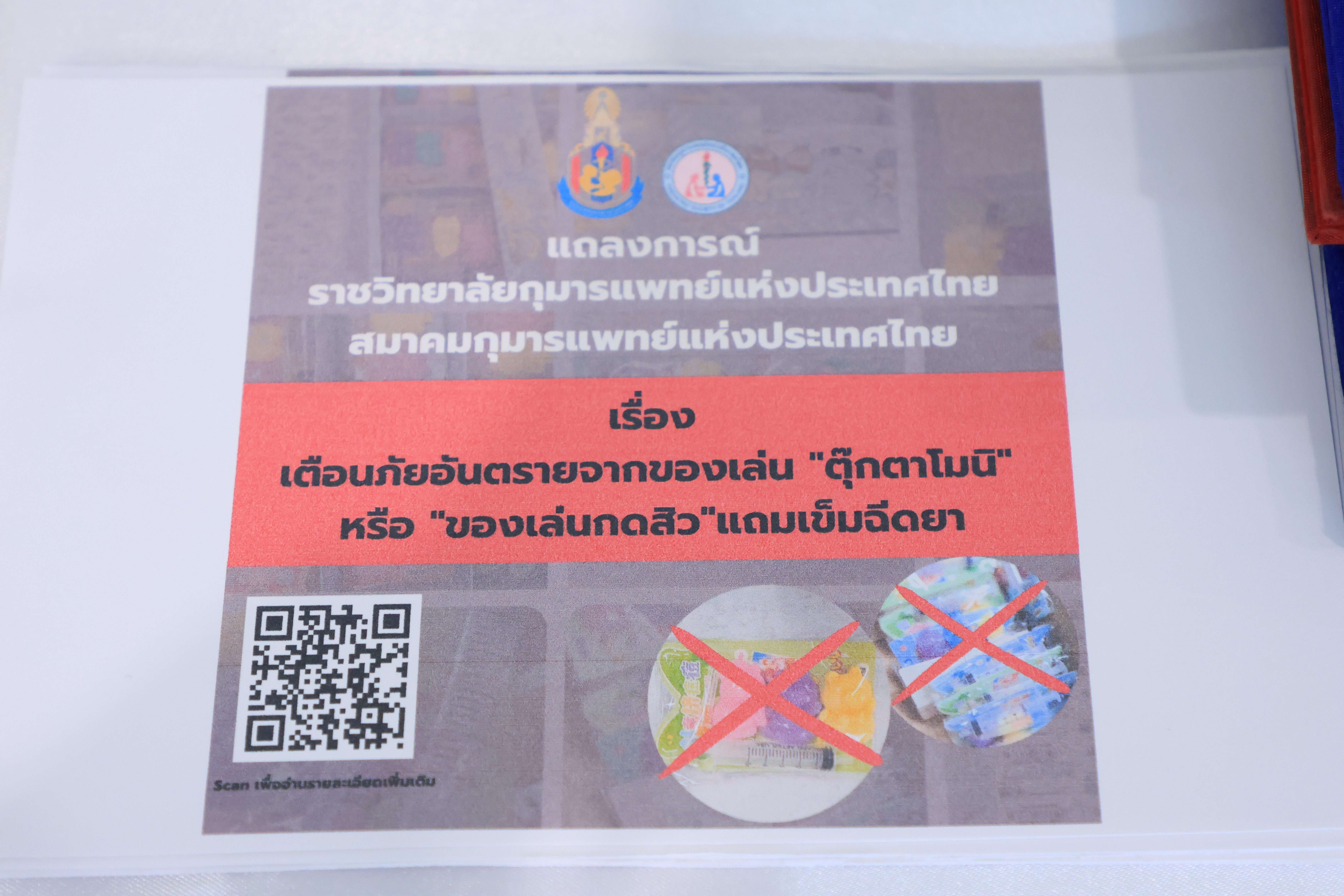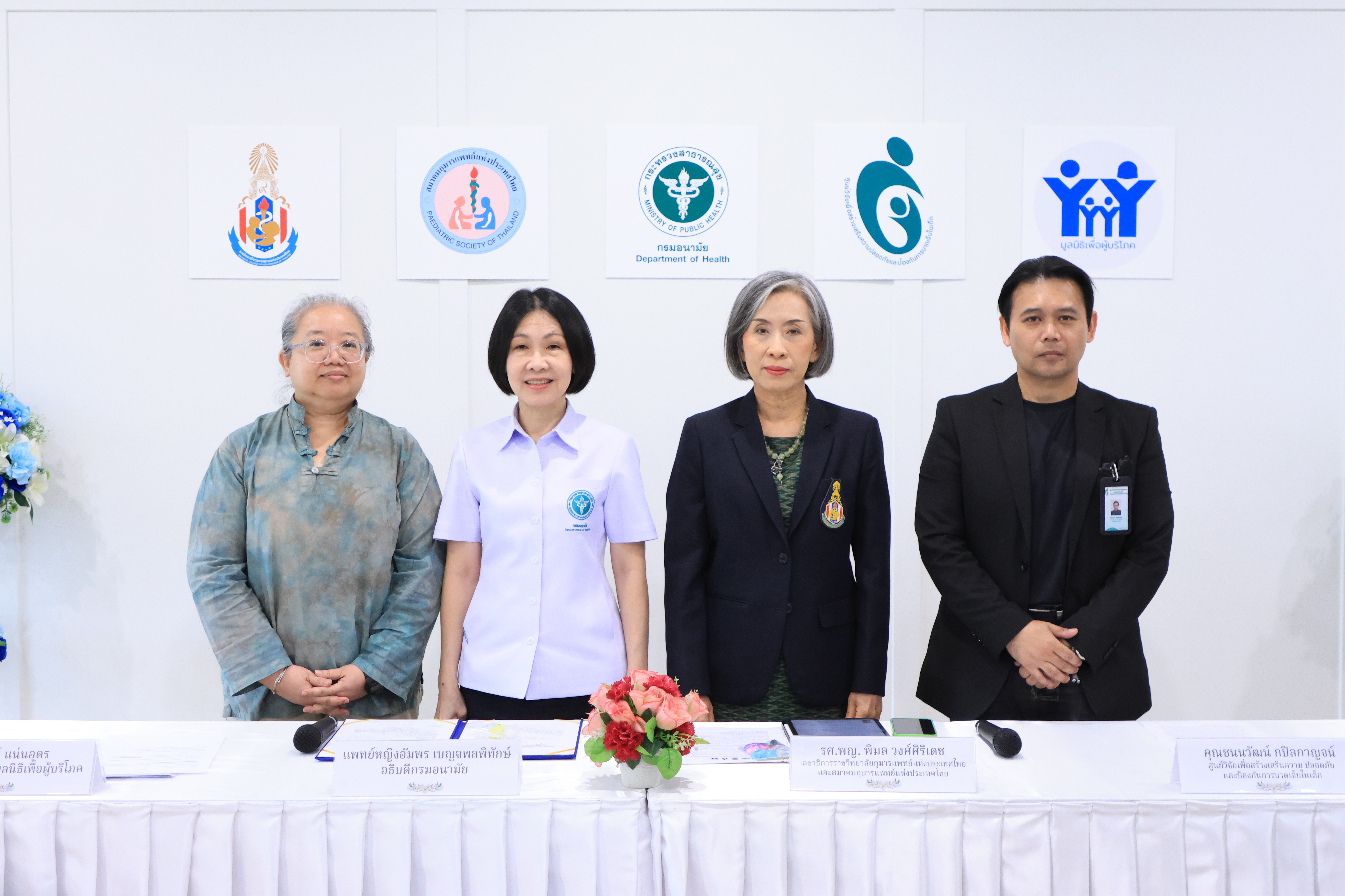 “กรมอนามัย กระทรวงสาธารณสุข จึงได้ร่วมกับราชวิทยาลัยกุมารแพทย์แห่งประเทศไทย และสมาคมกุมารแพทย์แห่งประเทศไทย ศูนย์วิจัยเพื่อสร้างเสริมความปลอดภัย และป้องกันการบาดเจ็บในเด็ก และมูลนิธิเพื่อผู้บริโภค ร่วมแถลงข่าวในครั้งนี้ เพื่อสร้างเกราะป้องกันให้เด็กไทยจากสิ่งที่เป็นอันตราย โดยหวังเป็นอย่างยิ่งว่า สังคมไทยจะมีความรอบรู้ด้านสุขภาพ ช่วยให้เด็กไทยเล่นอย่างปลอดภัยสร้างเด็กไทยมีพัฒนาการสมวัย เติบโตอย่างมีคุณภาพต่อไป” อธิบดีกรมอนามัย กล่าว