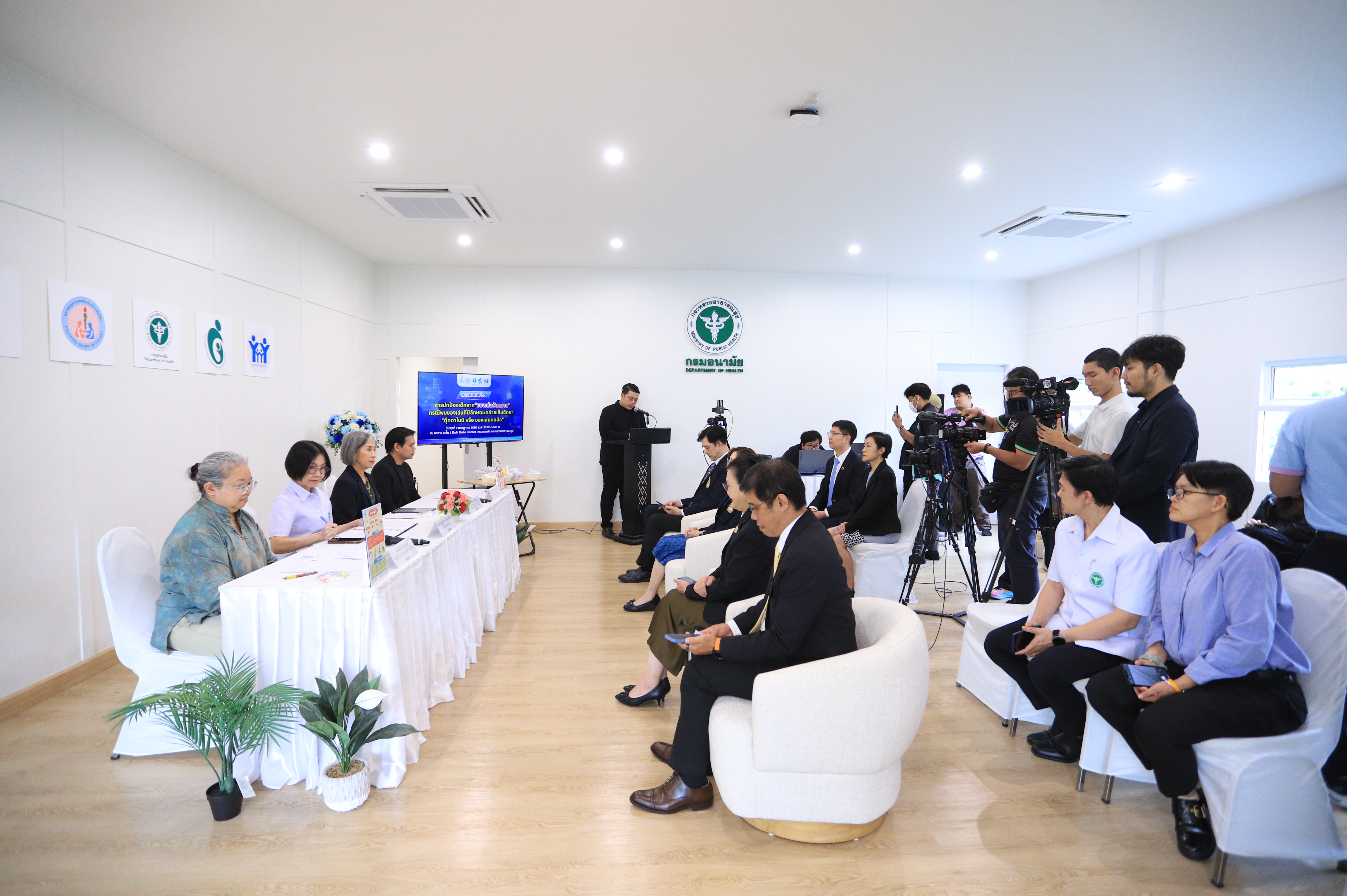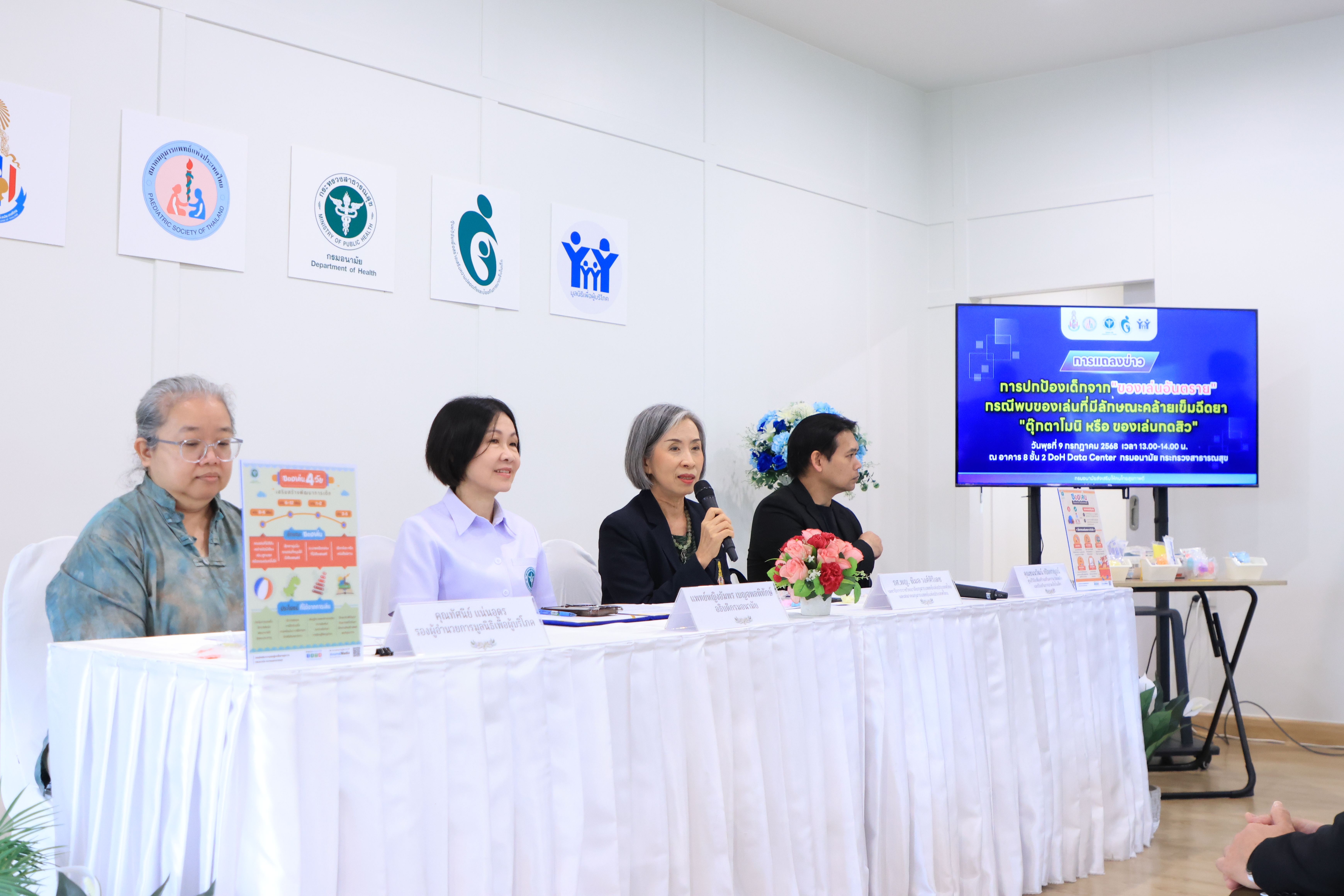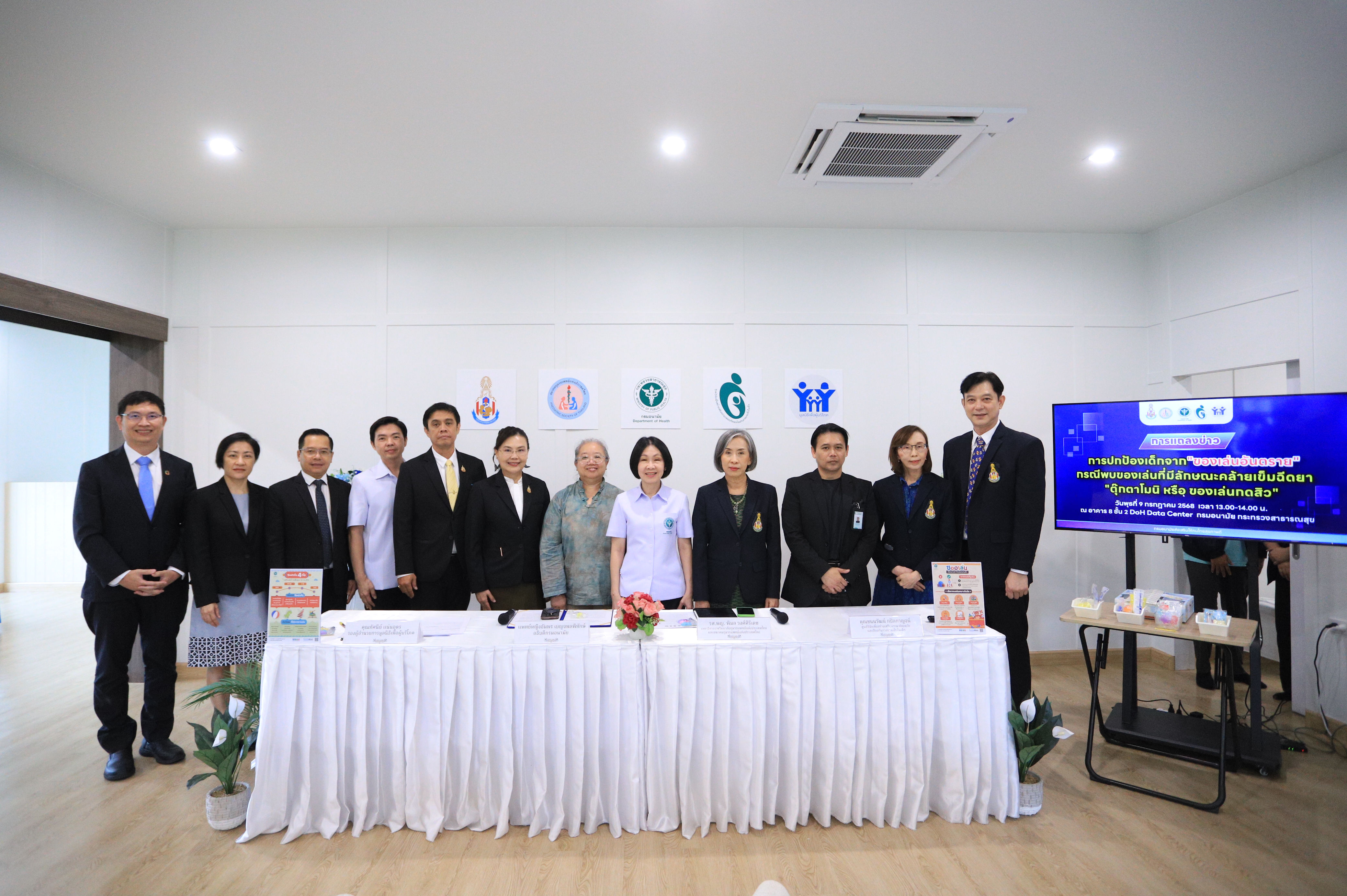 วันนี้ (9 กรกฎาคม 2568) แพทย์หญิงอัมพร เบญจพลพิทักษ์ อธิบดีกรมอนามัย พร้อมด้วย รองศาสตราจารย์ แพทย์หญิงพิมล วงศ์ศิริเดช เลขาธิการ ราชวิทยาลัยกุมารแพทย์แห่งประเทศไทยและสมาคมกุมารแพทย์แห่งประเทศไทย คุณชนนวัฒน์ กปิลกาญจน์ ศูนย์วิจัยเพื่อสร้างเสริมความปลอดภัย และป้องกันการบาดเจ็บในเด็ก และ คุณทัศนีย์ แน่นอุดร รองผู้อำนวยการมูลนิธิเพื่อผู้บริโภค ร่วมแถลงข่าวการปกป้องเด็กจาก “ของเล่นอันตราย” โดยมี ผู้บริหารและบุคลากรกรมอนามัย ร่วมงาน ณ อาคาร 8 ชั้น 2 DOH DATA CENTER กรมอนามัย กระทรวงสาธารณสุข