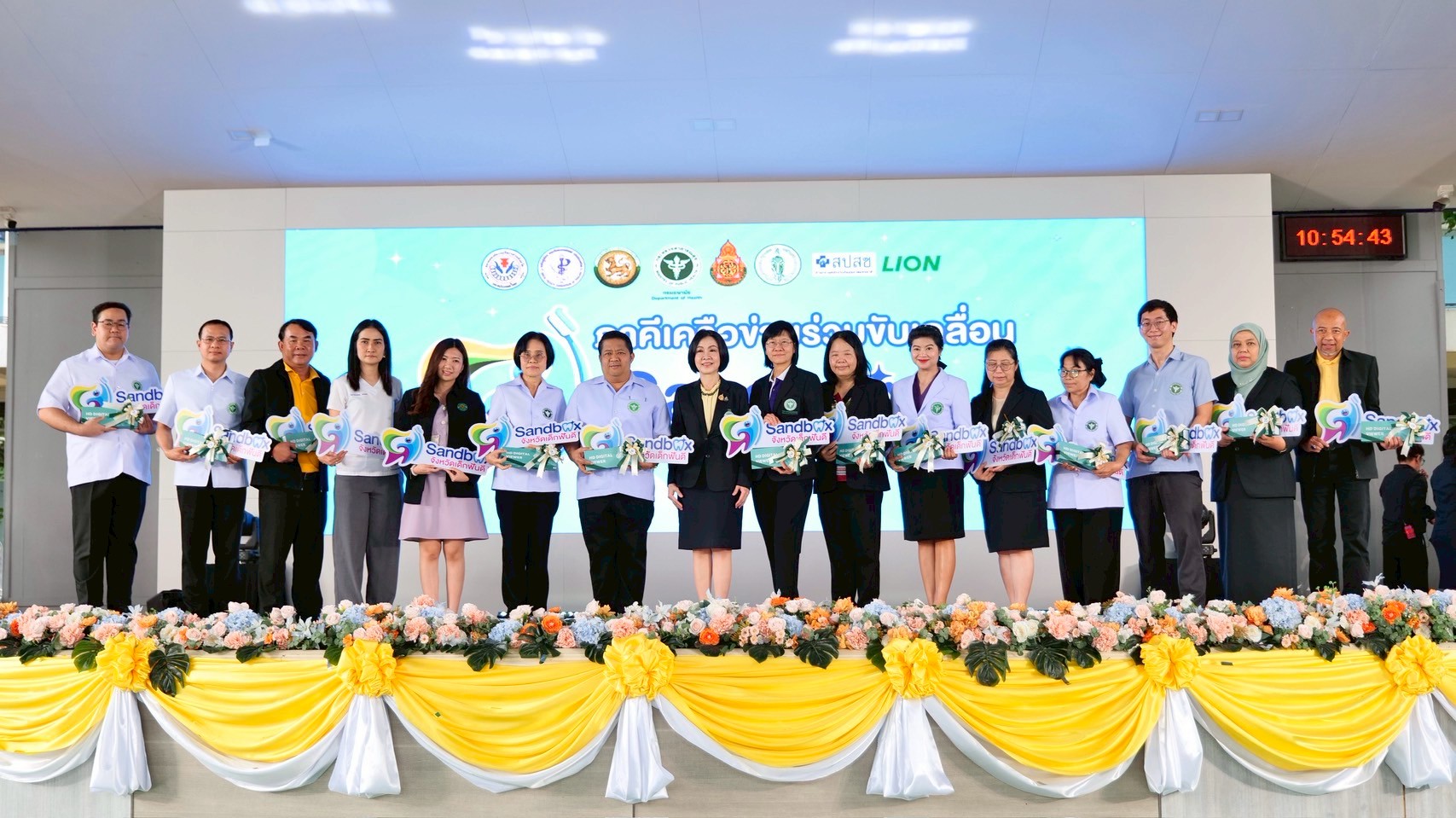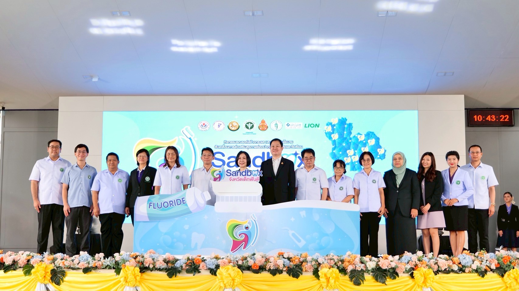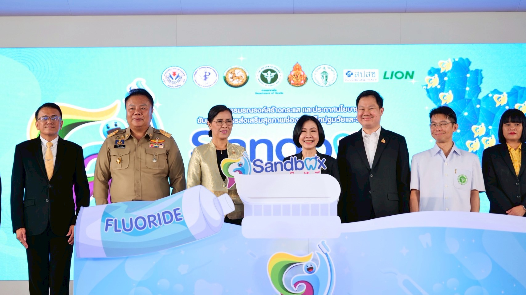 “ทั้งนี้ กระทรวงสาธารณสุข โดยกรมอนามัย สำนักงานหลักประกันสุขภาพแห่งชาติ สำนักงานคณะกรรมการการศึกษาขั้นพื้นฐาน กระทรวงมหาดไทย กรุงเทพมหานคร สมาคมองค์การบริหารส่วนจังหวัด รวมทั้งเครือข่ายวิชาชีพด้านทันตสุขภาพ และภาคเอกชน โดยบริษัทไลอ้อน (ประเทศไทย) จำกัด ได้ร่วมมือกันขับเคลื่อนการส่งเสริมสุขภาพช่องปากเด็กปฐมวัยและวัยเรียน เพื่อปลูกฝังพฤติกรรมสุขภาพช่องปากที่เหมาะสม พร้อมทั้งการจัดระบบบริการที่มีประสิทธิภาพ ไปจนถึงการสร้างสิ่งแวดล้อมที่เอื้อต่อการมีสุขภาพช่องปากที่ดีในทุกบริบทของเด็ก โดยจัดกิจกรรมรณรงค์สร้างกระแส และประกาศนโยบายขับเคลื่อนการส่งเสริมสุขภาพช่องปากเด็กปฐมวัยและวัยเรียน “Sandbox Model จังหวัดเด็กฟันดี”