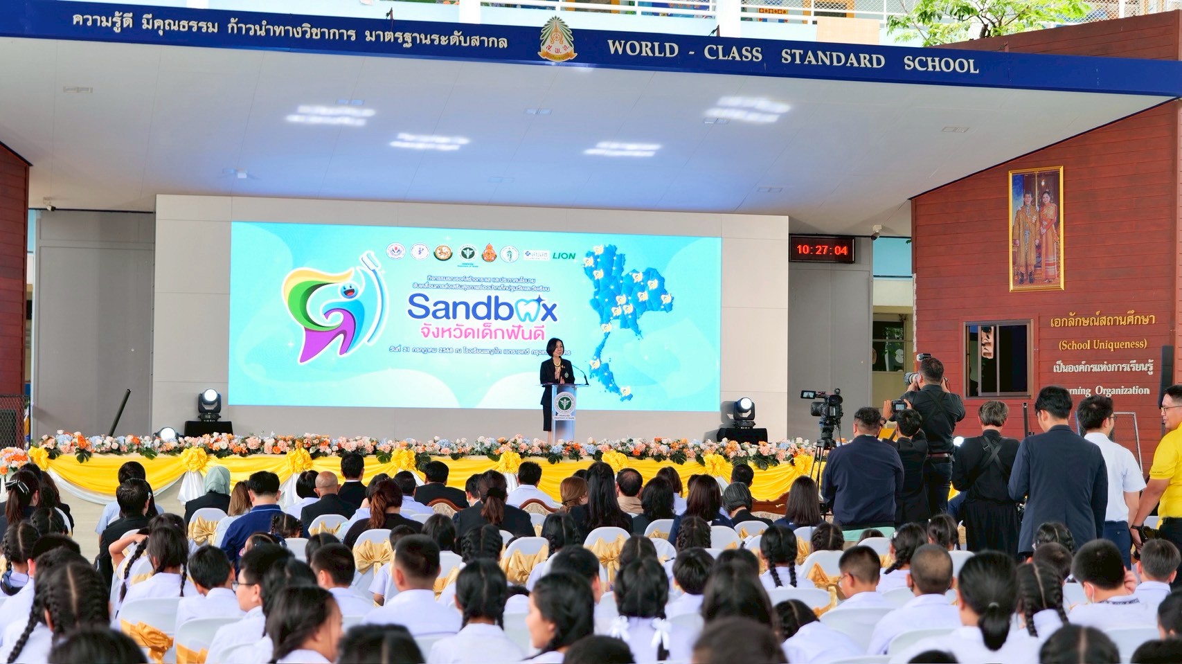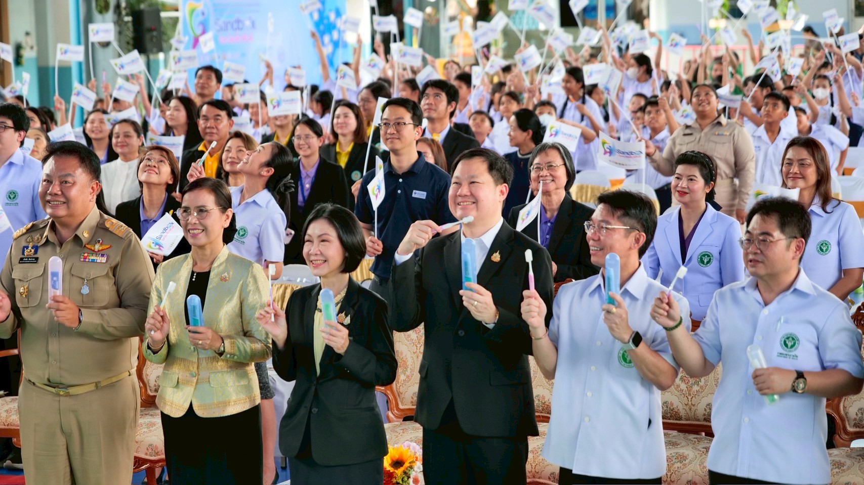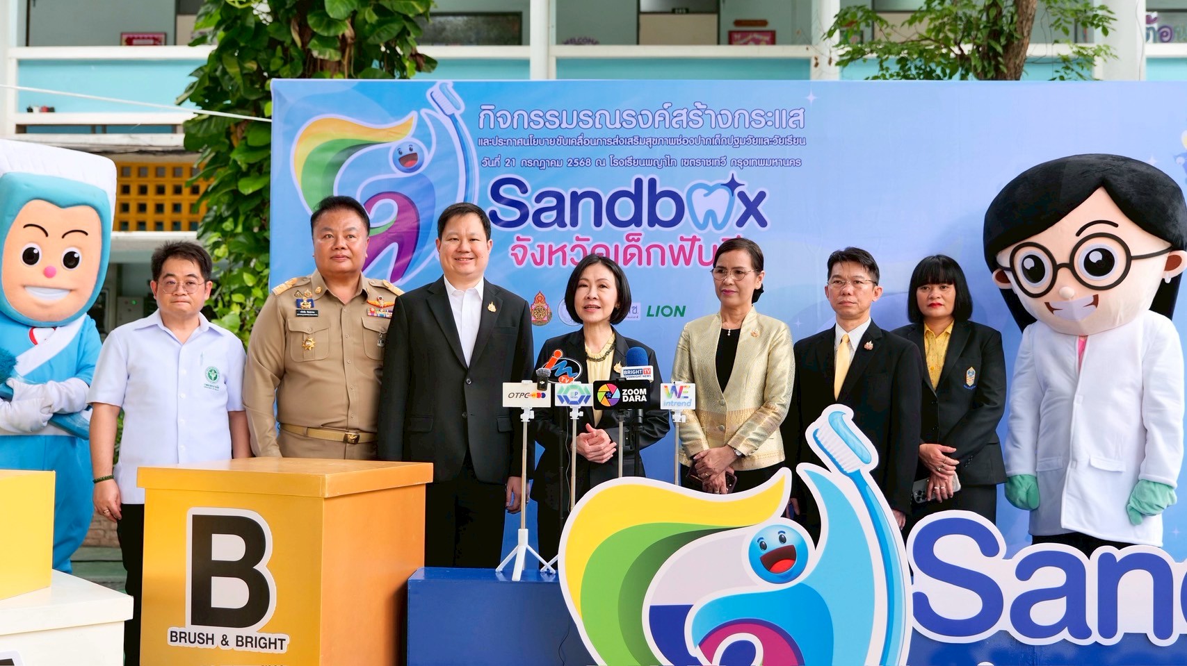 “ทั้งนี้ กระทรวงสาธารณสุข โดยกรมอนามัย สำนักงานหลักประกันสุขภาพแห่งชาติ สำนักงานคณะกรรมการการศึกษาขั้นพื้นฐาน กระทรวงมหาดไทย กรุงเทพมหานคร สมาคมองค์การบริหารส่วนจังหวัด รวมทั้งเครือข่ายวิชาชีพด้านทันตสุขภาพ และภาคเอกชน โดยบริษัทไลอ้อน (ประเทศไทย) จำกัด ได้ร่วมมือกันขับเคลื่อนการส่งเสริมสุขภาพช่องปากเด็กปฐมวัยและวัยเรียน เพื่อปลูกฝังพฤติกรรมสุขภาพช่องปากที่เหมาะสม พร้อมทั้งการจัดระบบบริการที่มีประสิทธิภาพ ไปจนถึงการสร้างสิ่งแวดล้อมที่เอื้อต่อการมีสุขภาพช่องปากที่ดีในทุกบริบทของเด็ก โดยจัดกิจกรรมรณรงค์สร้างกระแส และประกาศนโยบายขับเคลื่อนการส่งเสริมสุขภาพช่องปากเด็กปฐมวัยและวัยเรียน “Sandbox Model จังหวัดเด็กฟันดี”