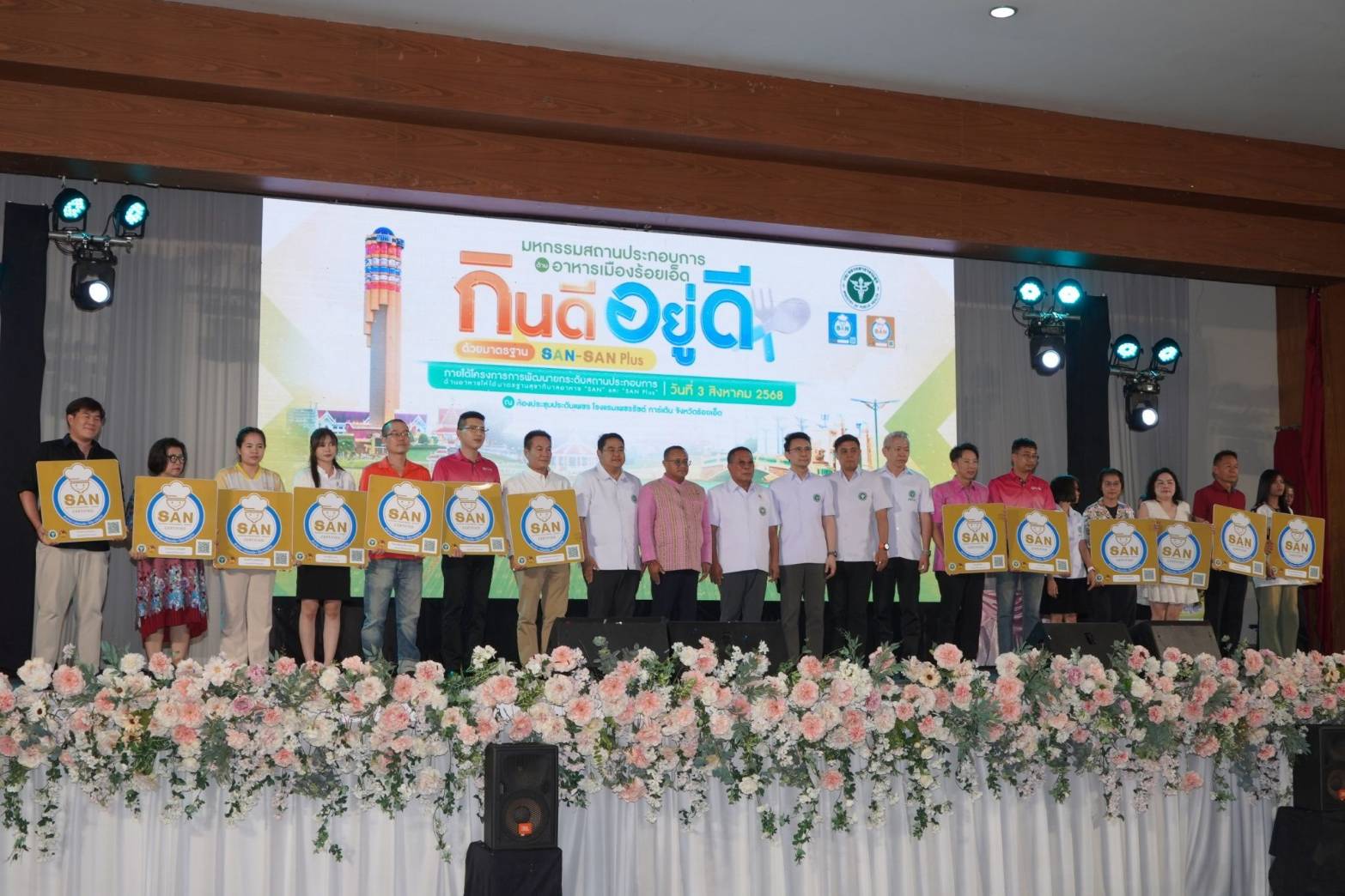 วันนี้ (3 สิงหาคม 2568) นายอนุชา สะสมทรัพย์ รัฐมนตรีช่วยว่าการกระทรวงสาธารณสุข เป็นประธานพิธีเปิดมหกรรมสถานประกอบการด้านอาหารเมืองร้อยเอ็ด : กินดี อยู่ดี ด้วยมาตรฐาน SAN และ SAN Plus ภายใต้โครงการการพัฒนายกระดับสถานประกอบการด้านอาหารให้ได้มาตรฐานสุขาภิบาลอาหาร “SAN” และ “SAN Plus” จังหวัดร้อยเอ็ด โดยมี นายวราวุธ ศิลปอาชา รัฐมนตรีว่าการกระทรวงการพัฒนาสังคมและความมั่นคงของมนุษย์ ร่วมเป็นเกียรติ พร้อมด้วย นายแพทย์เอกชัย เพียรศรีวัชรา ผู้ตรวจราชการกระทรวงสาธารณสุข เขตสุขภาพที่ 7 นายแพทย์ธิติ แสวงธรรม รองอธิบดีกรมอนามัย นายแพทย์ชาตรี เมธาธราธิป ผู้อำนวยการศูนย์อนามัยที่ 7 ขอนแก่น ผู้บริหารกระทรวงสาธารณสุข ผู้บริหารกรมอนามัย ภาคีเครือข่าย และอาสาสมัครสาธารณสุขจังหวัดร้อยเอ็ด ร่วมงาน ณ โรงแรมเพชรรัชต์ การ์เด้น อำเภอเมือง จังหวัดร้อยเอ็ด