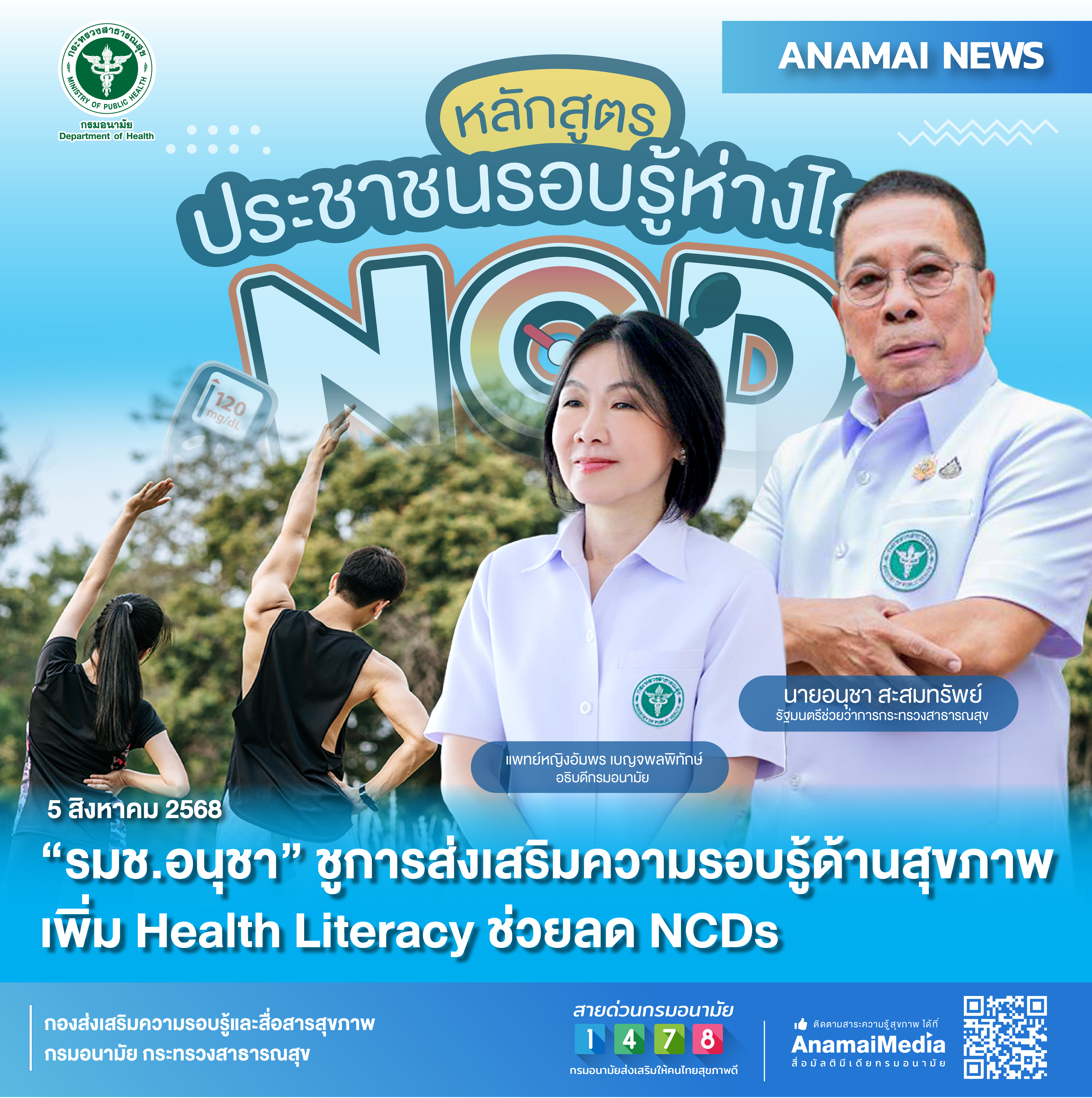 แพทย์หญิงอัมพร เบญจพลพิทักษ์ อธิบดีกรมอนามัย กล่าวเพิ่มเติมว่า โรค NCDs เป็นสิ่งที่กรมอนามัยให้ความสำคัญ ที่นอกจากนโยบายการส่งเสริมสุขภาพ ส่งเสริมโภชนาการที่ดี ลดหวาน มัน เค็ม มีกิจกรรมทางกายที่เพียงพอแล้ว การเสริมสร้างความรอบรู้ด้านสุขภาพเป็นต้นทาง ที่จะนำประชาชนให้มีพฤติกรรมสุขภาพที่พึงประสงค์ เช่น การเลี่ยงอาหารไขมันสูง อาหารหวาน อาหารเค็ม และเพิ่มออกกำลังกาย ภายใต้กิจกรรมต่างๆ เช่น หลักสูตรประชาชนรอบรู้ และครอบครัวรอบรู้ ห่างไกลโรค NCDs ขยับกายดี กินดี ไม่ป่วย ที่มีประชาชนเข้าถึงกว่า 187,000 คน การสร้างองค์กรและชุมชนรอบรู้ด้านสุขภาพ ที่มีจำนวนกว่า 17,000 แห่ง มีประชาชนเข้าร่วมกิจกรรมดังกล่าวกว่า 6 แสนคน มีความรอบรู้ด้านสุขภาพ ร้อยละ 90 ทั้งนี้ สะท้อนถึงข้อมูลพฤติกรรมด้านสุขภาพของประชาชนก่อนและหลังเข้าร่วมกิจกรรมส่งเสริมความรอบรู้ด้านสุขภาพ พบว่า ประชาชนที่มีพฤติกรรมที่พึงประสงค์เพิ่มขึ้นจากร้อยละ 63.94 เป็นร้อยละ 68.58 มีค่าดัชนีมวลกาย (BMI) ปกติ เพิ่มขึ้น จากร้อยละ 37.28 เป็นร้อยละ 41.35 และมีรอบเอวปกติ จากร้อยละ 46.00 เป็นร้อยละ 52.61 สำหรับหน่วยงานที่สนใจพัฒนาองค์กรและชุมชนรอบรู้ด้านสุขภาพ หรือประชาชนที่ต้องการดูแลสุขภาพเพื่อป้องกันโรคNCDs หรือ สามารถดูรายละเอียดเพิ่มเติมได้ที่ เว็บไซต์สาสุขอุ่นใจ หรือ https://sasukoonchai.anamai.moph.go.th/