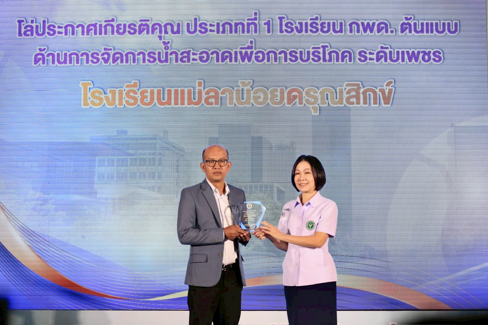 ดร.ทนพญ. ยุพิน โจ้แปง ผู้อำนวยการสำนักสุขาภิบาลอาหารและน้ำ กล่าวว่า การประชุมเชิงปฏิบัติการพัฒนาวิชาการด้านสุขาภิบาลอาหารและน้ำ ประจำปีงบประมาณ พ.ศ. 2568 กรมอนามัยยังได้มอบโล่ให้หน่วยงานพัฒนาคุณภาพน้ำดีเด่น ประกอบด้วย ประเภทที่ 1 โรงเรียนโครงการตามพระราชดำริ กองบัญชาการตำรวจ ตระเวนชายแดน ต้นแบบด้านการจัดการน้ำสะอาดเพื่อการบริโภค ระดับเพชร จำนวน 4 แห่ง ได้แก่ 1) โรงเรียนแม่ลาน้อยดรุณสิกข์ 2) โรงเรียนบ้านแม่สลิดหลวงวิทยา 3) โรงเรียนวัดโยธิราษฎร์ศรัทธาราม และ 4) ศูนย์การเรียนชุมชนชาวไทยภูเขา “แม่ฟ้าหลวง” บ้านคอโซทะ ประเภทที่ 2 หน่วยงานที่มีผลการดำเนินงานขับเคลื่อนการพัฒนาน้ำประปาหมู่บ้านสะอาด 3C ดีเด่น จำนวน 6 แห่ง ได้แก่ 1) สาธารณสุขจังหวัดนครราชสีมา 2) สาธารณสุขจังหวัดขอนแก่น 3) สาธารณสุขจังหวัดอุดรธานี 4) สาธารณสุขจังหวัดเชียงราย 5) สาธารณสุขจังหวัดมหาสารคาม และ 6) สาธารณสุขจังหวัดกาฬสินธุ์