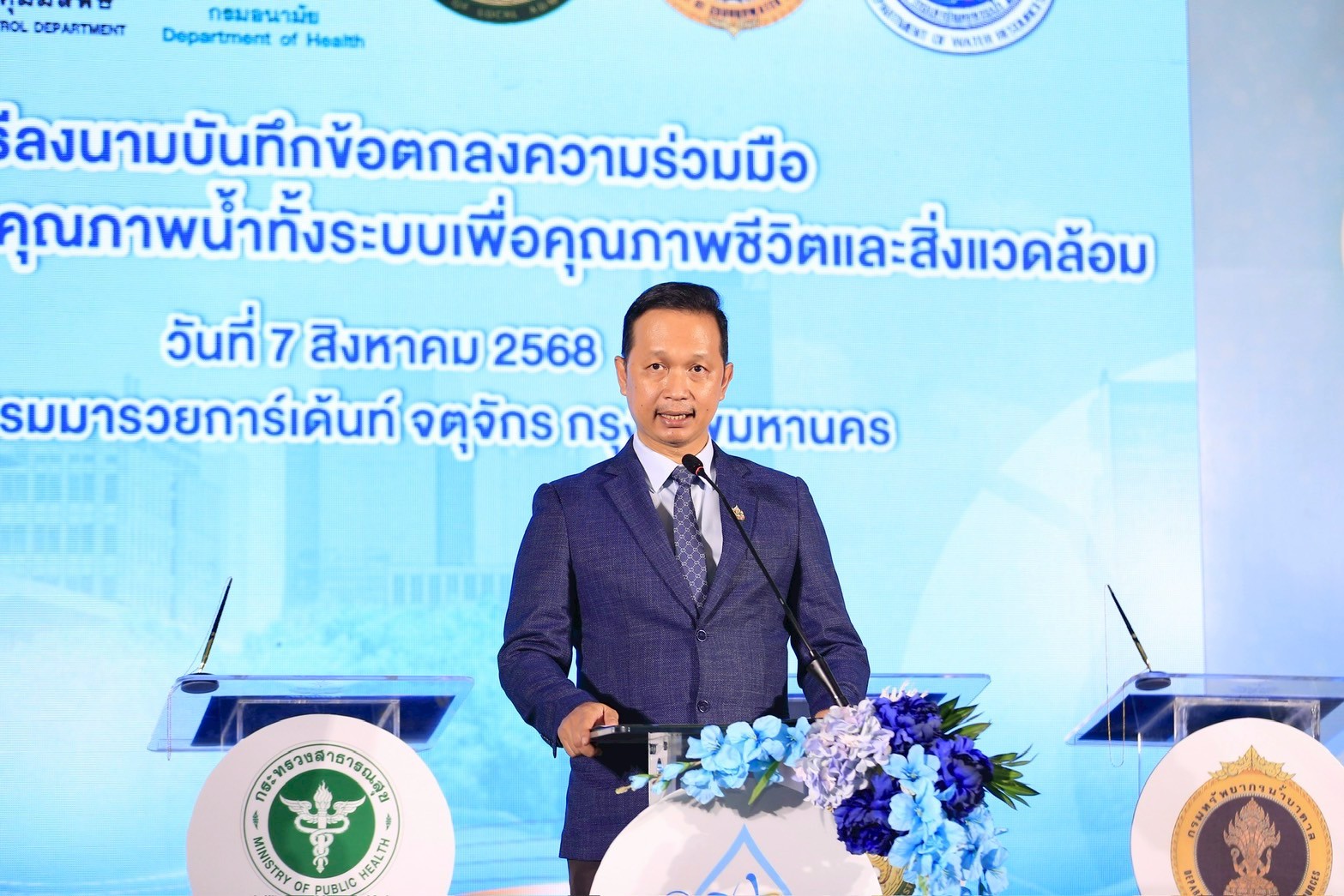 วันนี้ (7 สิงหาคม 2568) นายอนุชา สะสมทรัพย์ รัฐมนตรีช่วยว่าการกระทรวงสาธารณสุข มอบหมายให้แพทย์หญิงอัมพร เบญจพลพิทักษ์ อธิบดีกรมอนามัย เป็นประธานเปิดการประชุมเชิงปฏิบัติการพัฒนาวิชาการด้านสุขาภิบาลอาหารและน้ำ ประจำปีงบประมาณ พ.ศ. 2568 ภายใต้หัวข้อ “อาหารและน้ำ สู่วิถีชีวิตปกติใหม่เพื่อความปลอดภัยอย่างยั่งยืน” (Food and Water for the New Normal toward Sustainable Safety) และลงนามบันทึกข้อตกลงความร่วมมือว่าด้วยการจัดการคุณภาพน้ำทั้งระบบเพื่อคุณภาพชีวิตและสิ่งแวดล้อม และมอบโล่ให้แก่หน่วยงานที่มีการดำเนินงานการพัฒนาคุณภาพน้ำดีเด่น โดยมี ดร.นายแพทย์ปองพล วรปาณิรองอธิบดีกรมอนามัย นายแพทย์ปกรณ์ ตุงคะเสรีรักษ์ รองอธิบดีกรมอนามัย ผู้บริหารกรมอนามัย และผู้บริหารภาคีเครือข่าย ร่วมงาน ณ โรงแรมมารวยการ์เดนท์ จตุจักร กรุงเทพมหานคร