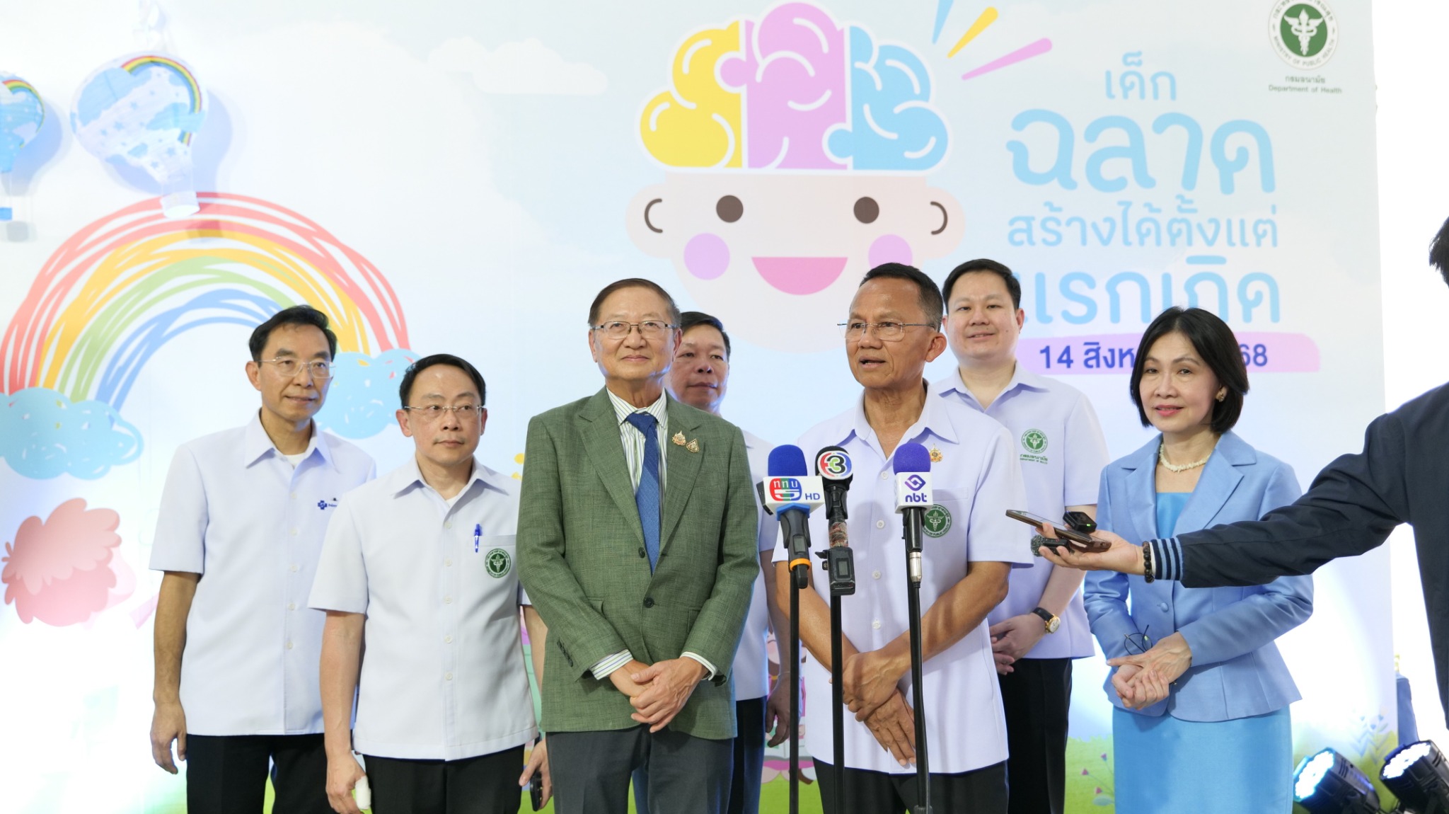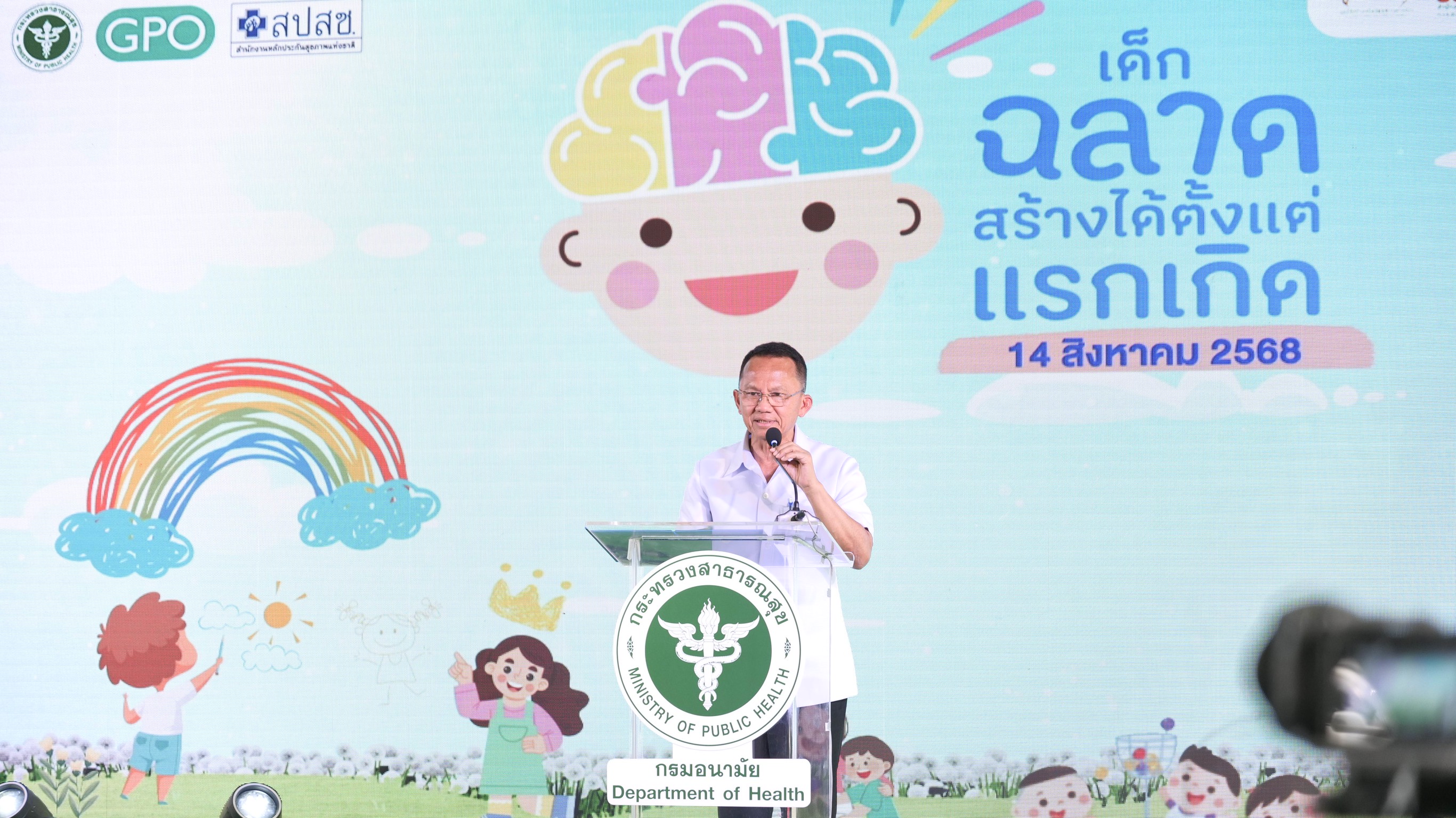 วันนี้ (14 สิงหาคม 2568) นายสมศักดิ์ เทพสุทิน รัฐมนตรีว่าการกระทรวงสาธารณสุข เป็นประธานเปิดโครงการ “เด็กฉลาดสร้างได้ตั้งแต่แรกเกิด” พร้อมด้วย นายแพทย์พรหมมินทร์ เลิศสุริย์เดช เลขาธิการนายกรัฐมนตรี Mr. Mark Landry รักษาการผู้แทนองค์การอนามัยโลก (WHO) ประจำประเทศไทย นางนภัทร พิศาลบุตร ผู้เชี่ยวชาญด้านการพัฒนาเด็กปฐมวัย องค์การยูนิเซฟ ประเทศไทยผู้บริหารกระทรวงสาธารณสุข ผู้บริหารกรมอนามัย ร่วมงาน ณ บริเวณโถงชั้นล่าง อาคาร 3 ชั้น 1 สำนักงานปลัดกระทรวงสาธารณสุข จังหวัดนนทบุรี