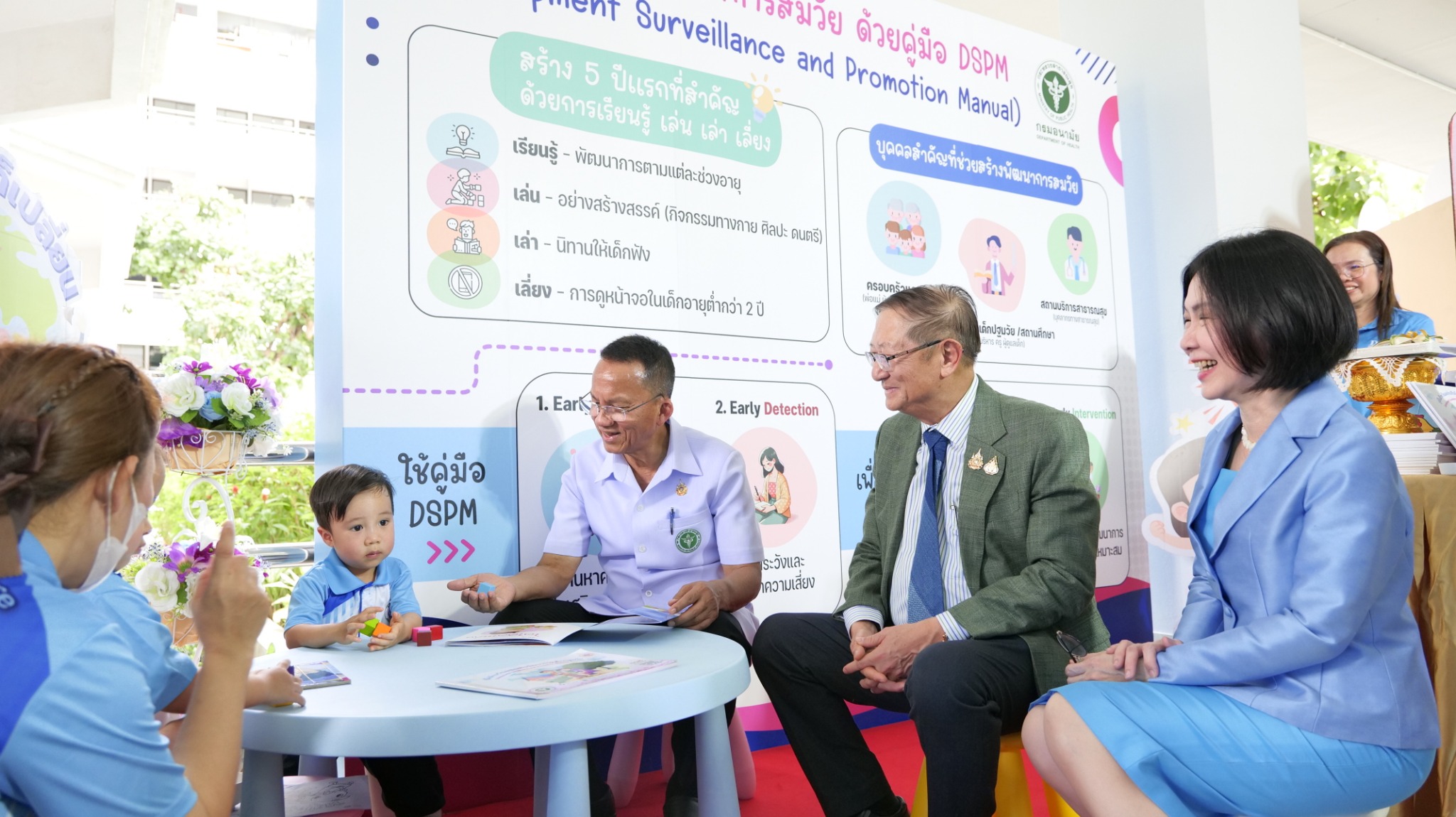 แพทย์หญิงอัมพร เบญจพลพิทักษ์ อธิบดีกรมอนามัย กล่าวว่า การสร้างเด็กที่เติบโตอย่างมีศักยภาพตั้งแต่แรกเกิด พ่อแม่ ควรเข้าใจ ใส่ใจ และให้เวลาคุณภาพกับลูกอย่างสม่ำเสมอ ดูแลสุขภาพกายและใจให้ดี ให้ลูกได้รับสารอาหารที่ครบถ้วน โดยเฉพาะธาตุเหล็ก สร้างรากฐานที่แข็งแกร่งด้วยการเล่นและการปฏิสัมพันธ์ที่ดีเชิงบวกกับลูก โดยเฉพาะช่วงก่อนนอน ควรอ่านนิทานด้วยกัน เพื่อปลูกฝังนิสัยรักการอ่านตั้งแต่เล็ก และลดการใช้หน้าจอให้น้อยที่สุด สิ่งเหล่านี้จะช่วยให้ลูกน้อยเติบโตอย่างสมบูรณ์ เป็นผู้ใหญ่ที่มีคุณภาพ และเป็นกำลังสำคัญ ในการพัฒนาประเทศไทยต่อไป โดยกรมอนามัยได้ริเริ่มและขับเคลื่อนโครงการ “เด็กฉลาดสร้างได้ตั้งแต่แรกเกิด” อย่างเป็นรูปธรรม ครอบคลุมทั้งการส่งเสริมโภชนาการ การเลี้ยงลูกด้วยนมแม่ และการส่งเสริมพัฒนาการสมวัย และการพัฒนาการอ่าน ซึ่งเป็นปัจจัยสำคัญในการพัฒนาสมองและทักษะชีวิตของเด็ก และเป็นสิ่งที่ครอบครัวไทยควรปฏิบัติ เพราะจะเป็นผลลัพธ์ที่ดีต่ออนาคตของชาติ