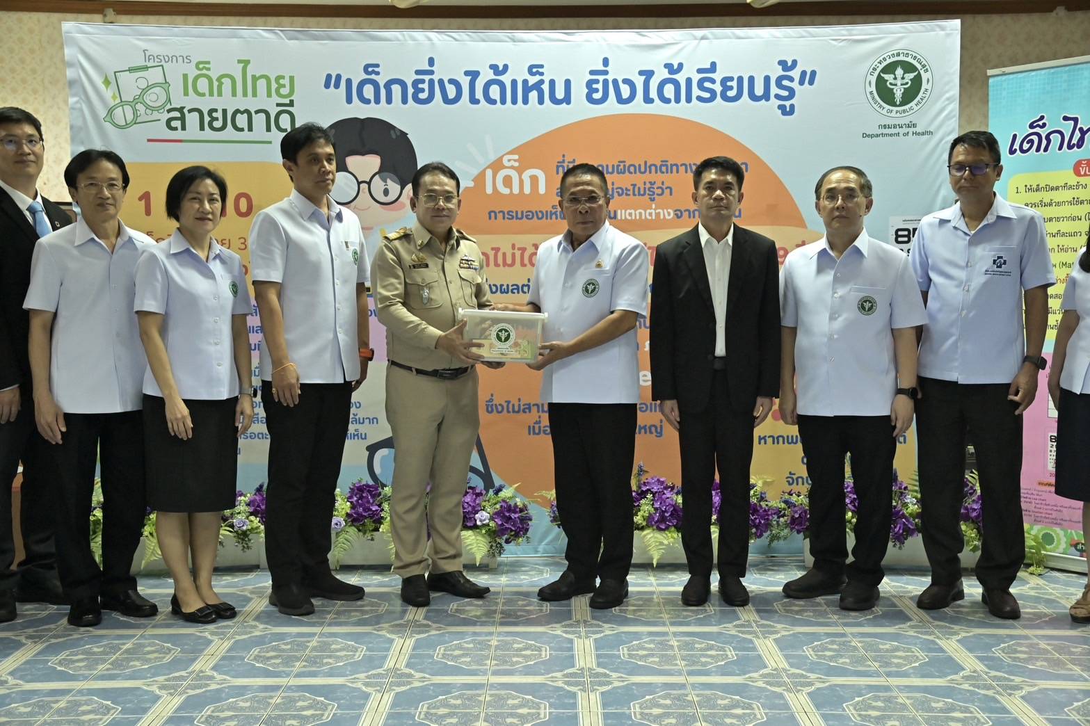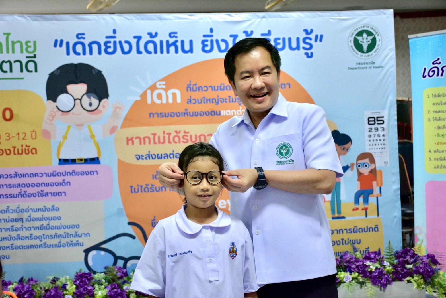 นายอนุชา สะสมทรัพย์ รัฐมนตรีช่วยว่าการกระทรวงสาธารณสุข กล่าวว่า กระทรวงสาธารณสุขให้ความสำคัญในการพัฒนาเด็กไทย ซึ่งเป็นอนาคตของชาติ เพราะเด็กในวันนี้คือผู้ใหญ่ในวันหน้า ถือว่าเป็นกำลังสำคัญในการพัฒนาชาติ บริหารบ้านเมือง ดังนั้น การวางรากฐานโครงสร้างคุณภาพเพื่อสร้างเด็กรุ่นใหม่ที่มีความคิดที่ดี การเรียนรู้ที่ดีมีความพร้อมด้านร่างกาย จิตใจ อารมณ์ สังคมรอบด้าน รวมถึงการส่งเสริมสุขภาพเด็กให้มีการเจริญเติบโตตามวัยอย่างเต็มศักยภาพ สุขภาพร่างกายสมบูรณ์แข็งแรงจึงเป็นเรื่องสำคัญจำเป็น ดวงตาเป็นอวัยวะสำคัญของร่างกาย ช่วยให้มองเห็นสิ่งต่างๆ ได้ เป็นการเพิ่มโอกาสการเรียนรู้ช่วยให้เรียนเก่งเรียนดี เพิ่มสติปัญญาความฉลาด การเรียนรู้มากกว่าร้อยละ 80 เกิดจากการมองเห็น การตรวจคัดกรองสายตานักเรียน เป็นสิทธิประโยชน์ตามระบบหลักประกันสุขภาพแห่งชาติ หากตรวจพบสายตาผิดปกติ ส่งต่อรับการตรวจวินิจฉัยโดยจักษุแพทย์หรือทีมจักษุ อาจพิจารณาให้ใส่แว่นสายตา โดยผู้ปกครองพาไปตัดแว่นหรืออาจได้รับสนับสนุนแว่นสายตาจากองค์กรภาครัฐต่างๆ การจัดกิจกรรมรณรงค์เด็กไทยสายตาดี เป็นโอกาสดีในการสร้างความร่วมมือ เสริมสร้างผนึกพลังขับเคลื่อนงานโครงการอย่างเข้มแข็งและเป็นรูปธรรม