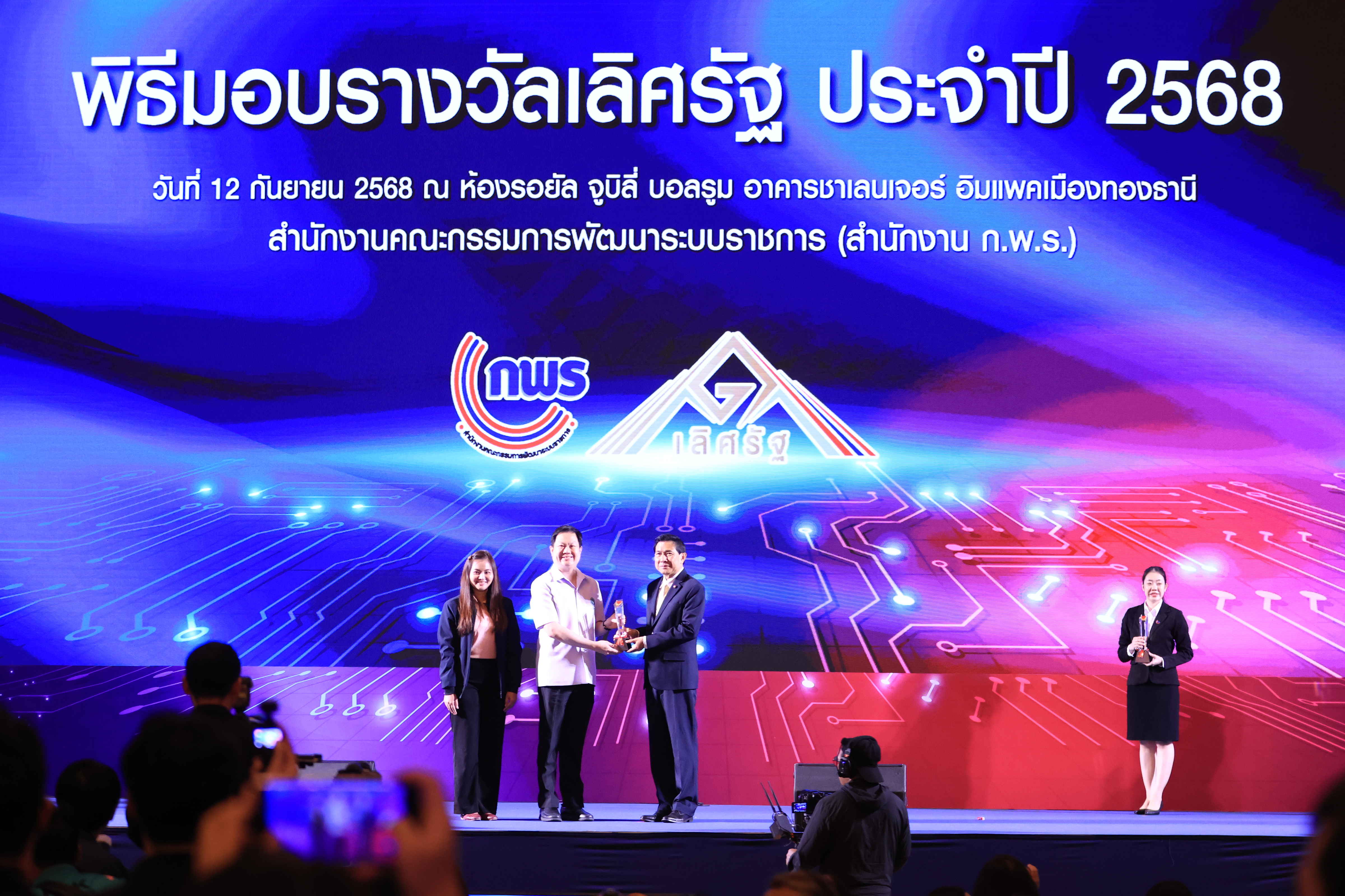 วันนี้ (12 กันยายน 2568) แพทย์หญิงอัมพร เบญจพลพิทักษ์ อธิบดีกรมอนามัย มอบหมายให้ ดร.นายแพทย์ปองพล วรปาณิ รองอธิบดีกรมอนามัย นายแพทย์ปกรณ์ ตุงคะเสรีรักษ์ รองอธิบดีกรมอนามัย ร่วมพิธีมอบรางวัลเลิศรัฐ ประจำปี 2568 ในหัวข้อ "ภาครัฐอัจฉริยะ ขับเคลื่อนอนาคต" Smart Government & Smart Services : Driving for the Future ณ ห้อง จูบิลี่ บอลรูม อาคารชาเลนเจอร์ อิมแพคเมืองทองธานี