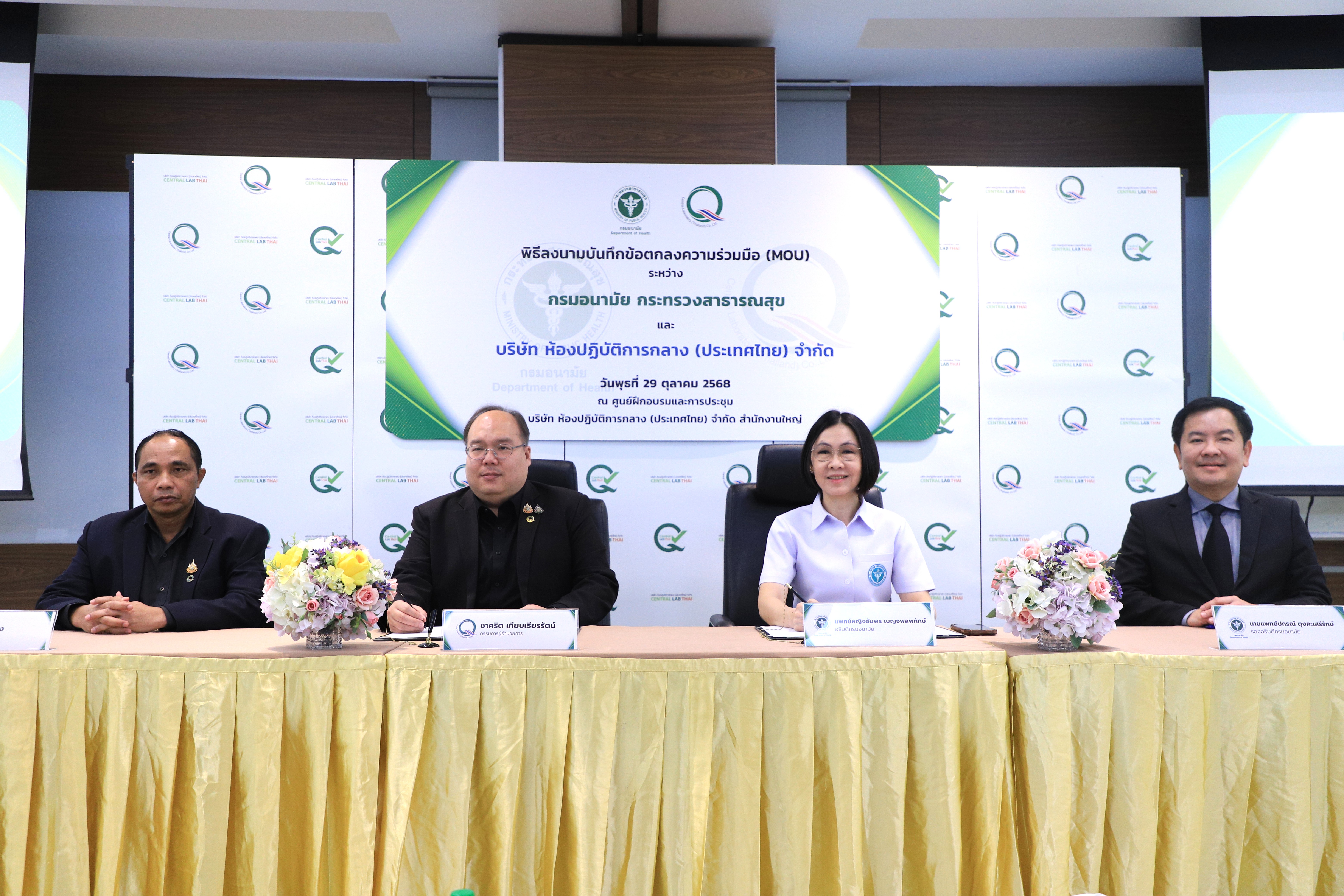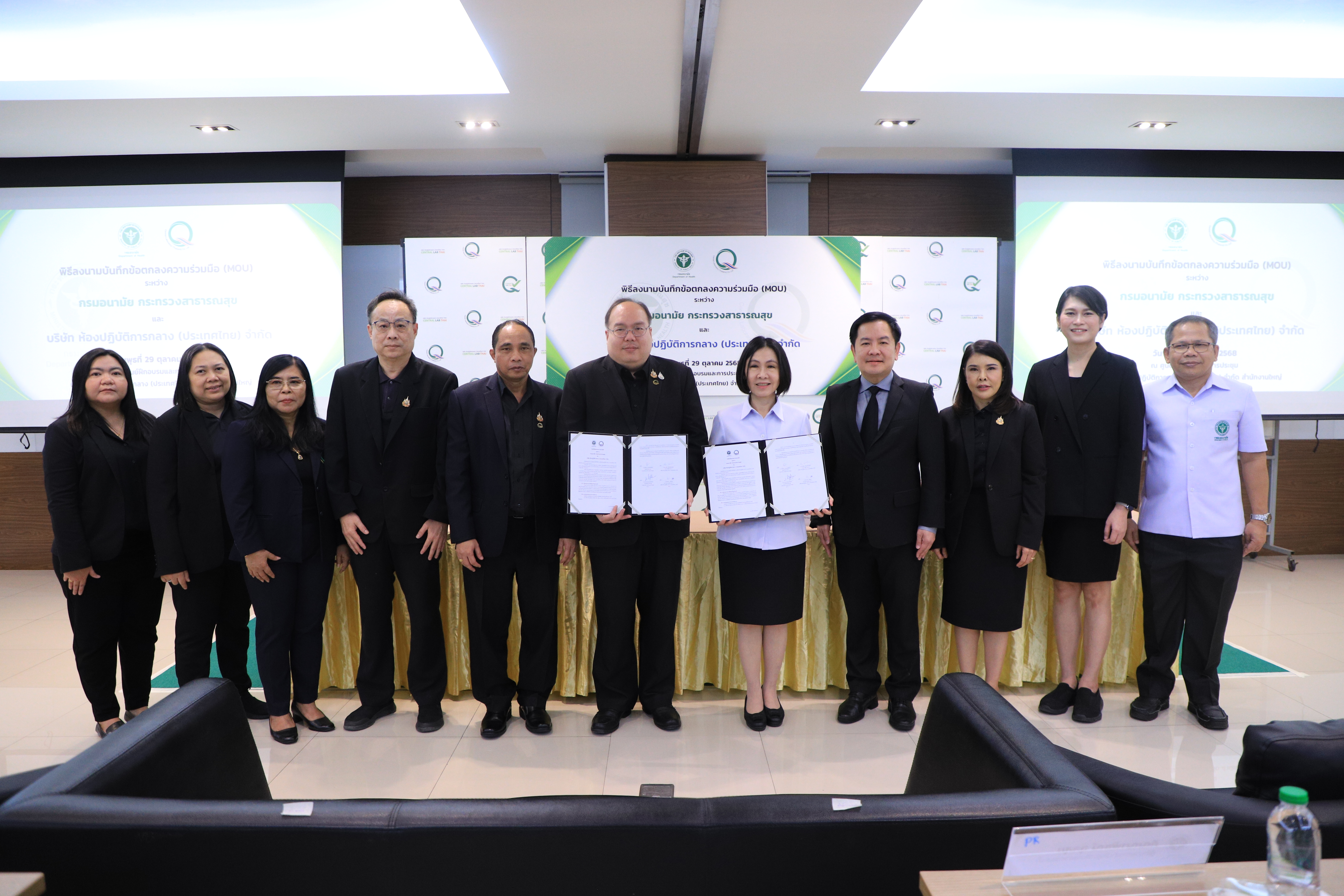 วันนี้ (29 ตุลาคม 2568) แพทย์หญิงอัมพร เบญจพลพิทักษ์ อธิบดีกรมอนามัย พร้อมด้วย นายชาคริต เทียบเธียรรัตน์ กรรมการผู้อำนวยการ บริษัท ห้องปฏิบัติการกลาง (ประเทศไทย) จำกัด ร่วมลงนามในบันทึกข้อตกลงความร่วมมือ (MOU) เพื่อสร้างความร่วมมือทั้งทางด้านวิชาการและการตรวจสอบคุณภาพทางห้องปฏิบัติการ ระหว่าง “กรมอนามัย” กับ “CLT” ในการดำเนินการส่งเสริมกิจกรรมตามบทบาทภารกิจของทั้งสองฝ่าย เพื่อให้เกิดประโยชน์และประสิทธิภาพสูงสุด กำหนดแผนดำเนินงานระยะยาวร่วมกัน 5 ปี (พ.ศ 2568 – 2573) สร้างหลักประกันให้คนไทยได้บริโภคอาหารและน้ำดื่มที่สะอาด ปลอดภัย อย่างยั่งยืน ณ บริษัท ห้องปฏิบัติการกลาง (ประเทศไทย) จำกัด