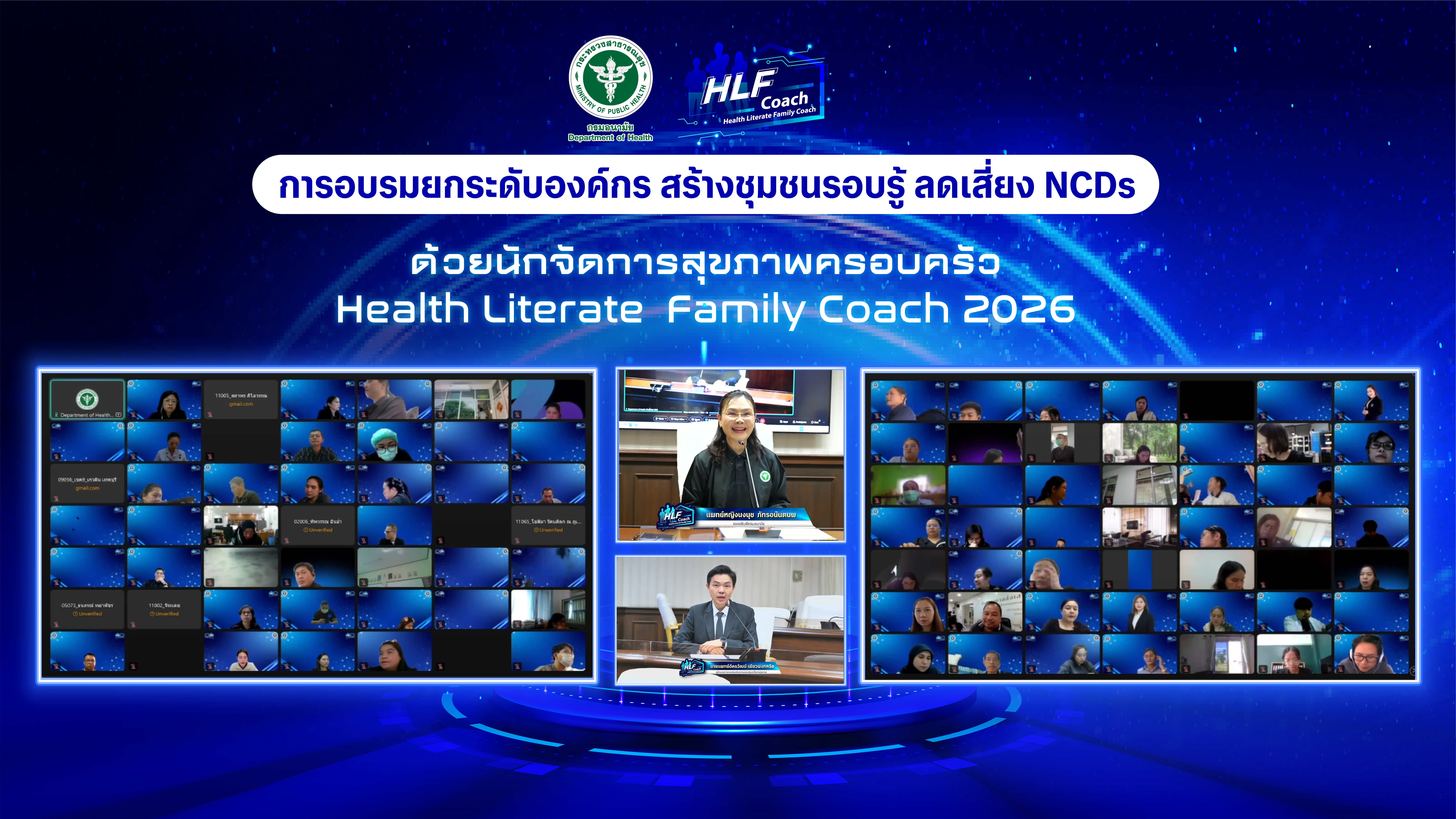 วันนี้ (3 ธันวาคม 2568) แพทย์หญิงอัมพร เบญจพลพิทักษ์ อธิบดีกรมอนามัย มอบหมายให้แพทย์หญิงนงนุช ภัทรอนันตนพ รองอธิบดีกรมอนามัย เป็นประธานเปิดกิจกรรมยกระดับองค์กร สร้างชุมชนรอบรู้ลดเสี่ยง NCDs ด้วยนักจัดการสุขภาพครอบครัว Health Literate Family Coach (HLF COACH) ผ่านระบบออนไลน์ พร้อมด้วย นายแพทย์อัครวัฒน์ เพียวพงภควัต ผู้อำนวยการกองส่งเสริมความรอบรู้และสื่อสารสุขภาพ