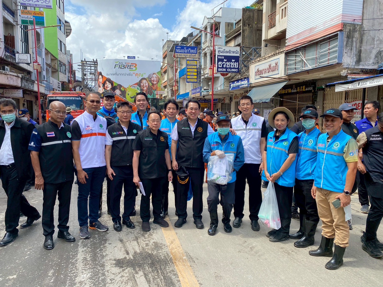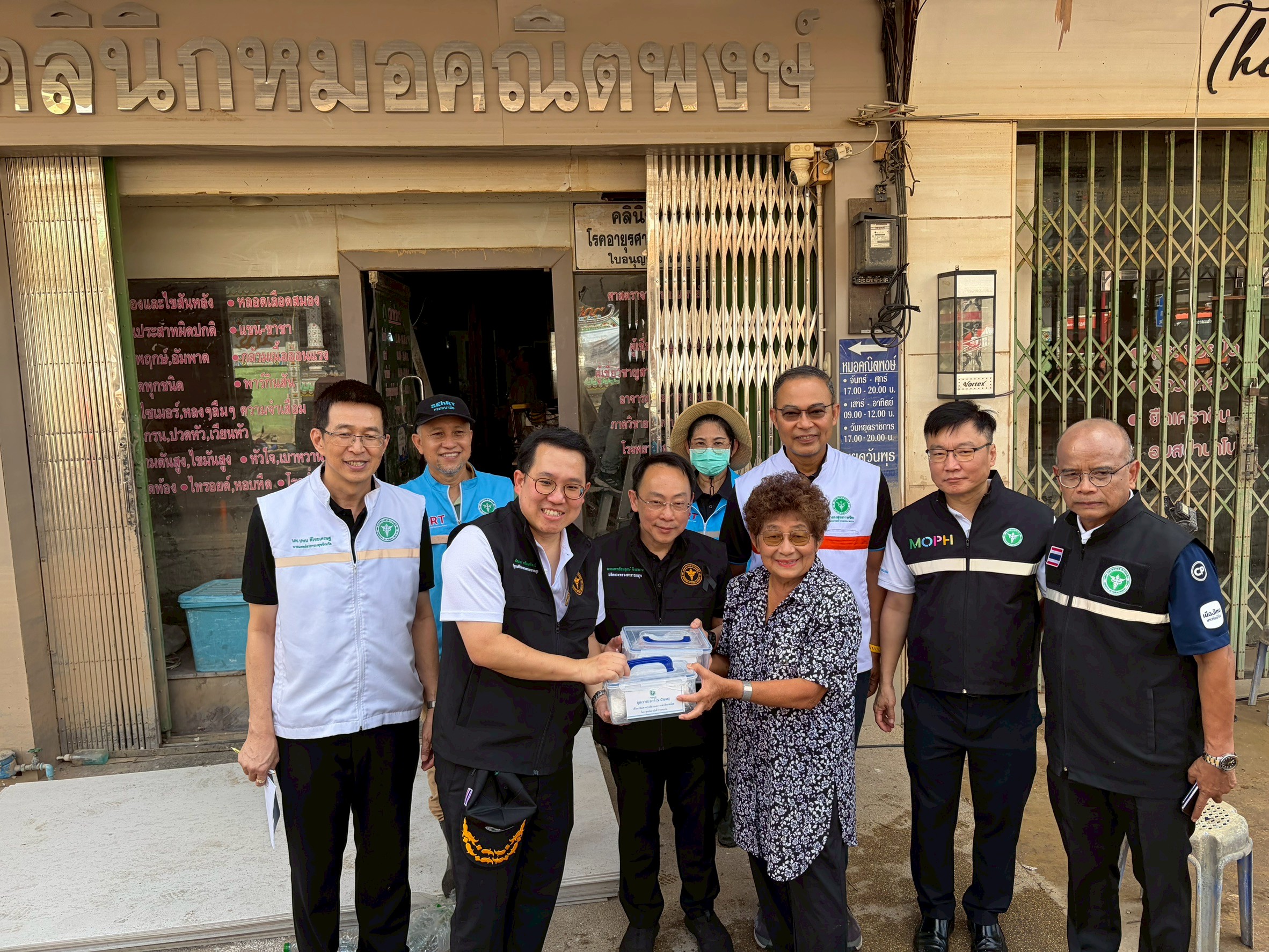 นายพัฒนา พร้อมพัฒน์ รัฐมนตรีว่าการกระทรวงสาธารณสุข กล่าวว่า กระทรวงสาธารณสุขยังคงมอบหมายให้ทุกหน่วยงาน ปฏิบัติหน้าที่ช่วยเหลือประชาชน และเร่งฟื้นฟูหาดใหญ่หลังน้ำลดทีม โดยมอบหมายให้ทีม SEhRT กรมอนามัย ปฏิบัติงานร่วมกับ สำนักงานสาธารณสุขจังหวัดสงขลา และเทศบาลนครหาดใหญ่ เฝ้าระวังคุณภาพน้ำประปา การจัดการขยะ และสภาพแวดล้อม รวมทั้ง ดูแลส่งเสริมสุขภาพกลุ่มเปราะบาง ซึ่งจากการลงพื้นที่ เมื่อวันที่ 5 ธันวาคม 2568 จำนวน 39 ชุมชน พบว่า คุณภาพน้ำประปายังไม่ผ่านมาตรฐานหลายจุด คือ คลอรีนอิสระคงเหลือส่วนใหญ่ต่ำกว่า 0.2 mg/l และบางจุดน้ำขุ่น มีกลิ่นโคลน มีสาเหตุมาจากท่อแตก ระบบเติมคลอรีนเสียหาย และถังพักน้ำไม่สะอาด พบผู้ป่วยอุจจาระร่วงเพิ่ม โดยเฉพาะเด็กเล็ก ผู้สูงอายุและผู้ป่วยติดเตียงมีอาการป่วยระบบทางเดินอาหารเพิ่มขึ้น บางครอบครัวมีอาหารไม่เพียงพอ และขาดยาน้ำแก้ไข้ จึงให้กรมอนามัยเร่งกระจายชุดสุขอนามัย ได้แก่ ชุดน้ำสะอาด Wash kit ชุดเราสะอาด V-Clean แผ่นรองซับ สบู่ แปรงสีฟัน นมกล่อง และยาทาน้ำกัดเท้า เพื่อช่วยเหลือเร่งด่วน