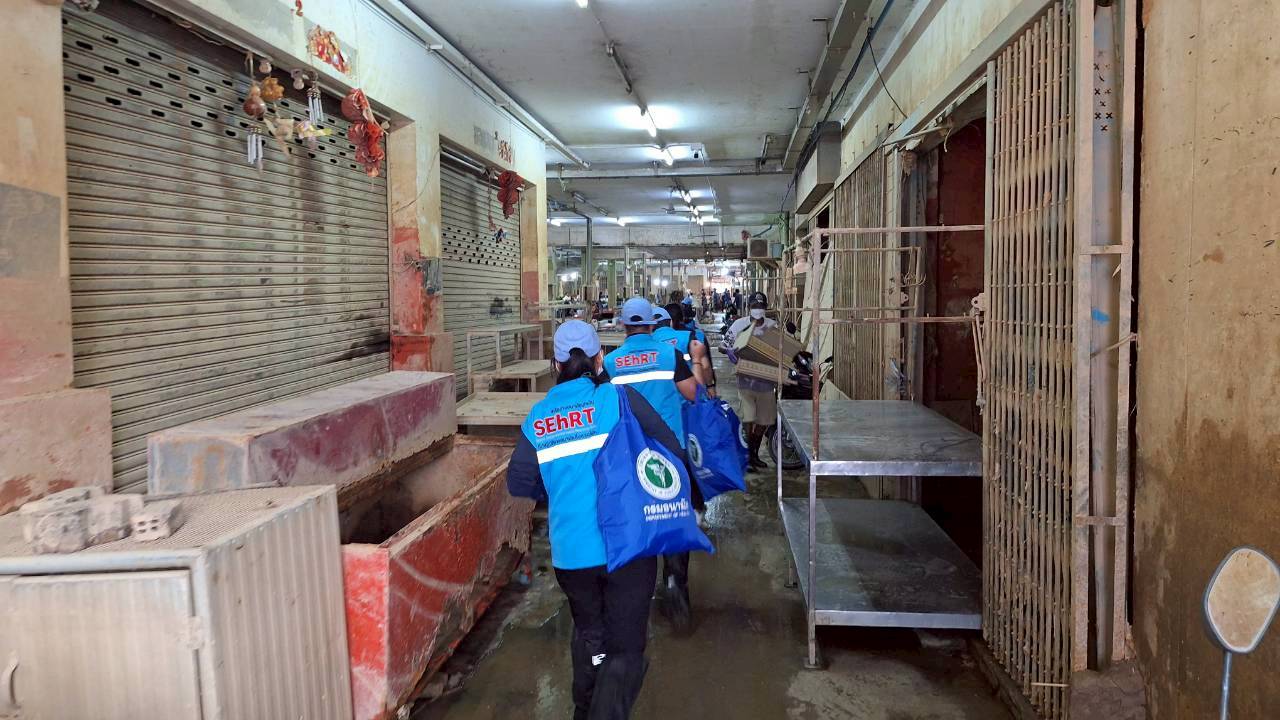 แพทย์หญิงอัมพร เบญจพลพิทักษ์ อธิบดีกรมอนามัย กล่าวว่า สำหรับการลงพื้นที่ดำเนินงานของกรมอนามัย กระทรวงสาธารณสุข ร่วมกับ การประปาส่วนภูมิภาค สาขาหาดใหญ่ พบว่า ระบบผลิตน้ำเริ่มทำงานได้แล้ว แต่ยังมีท่อแตกหลายจุดทำให้น้ำไหลอ่อนและระบบเติมคลอรีนยังเสียหาย และสนับสนุน EM เพื่อช่วยลดกลิ่นในพื้นที่สถานีผลิตน้ำ และขอให้เร่งซ่อมแซมเพื่อให้ประชาชนมีน้ำปลอดภัยเร็วที่สุด สำหรับคำแนะนำแก่ประชาชนให้ทำความสะอาดก๊อกน้ำ ถังเก็บน้ำ ตรวจสอบรอยรั่ว ปล่อยน้ำจนใสหากน้ำมีกลิ่นให้หลีกเลี่ยงใช้งาน พบขยะในหลายชุมชนตกค้างจำนวนมาก มีกลิ่นเหม็น และเป็นแหล่งรวมของแมลงวัน และสัตว์พาหะนำโรค โดยเฉพาะชุมชนที่อยู่ติดคลองและพื้นที่ตลาด ทีม SEhRT กรมอนามัย ได้โรยปูนขาวตามจุดน้ำขัง ราดจุลินทรีย์น้ำ (EM) เพื่อลดกลิ่นและเชื้อโรค แนะนำคัดแยกขยะ โดยเฉพาะซากสัตว์และเศษอาหาร ทั้งนี้ ขอให้ประชาชนระมัดระวังโรคท้องเสียและท้องร่วง ซึ่งพบได้บ่อยจากน้ำและอาหารปนเปื้อน ล้างมือให้สะอาดทุกครั้ง หลังเข้าห้องน้ำ และก่อนปรุงหรือรับประทานอาหาร โดยใช้สบู่หรือเจลแอลกอฮอล์ ไม่ทิ้งอาหารค้างคืนหรือนำอาหารที่บูดเน่าง่ายมารับประทานซ้ำ หลีกเลี่ยงอาหารที่มีกลิ่น สี หรือรสผิดปกติ เลือกดื่มน้ำบรรจุขวดที่ปิดสนิทและมีเครื่องหมาย อย. รับรอง หลีกเลี่ยงการกินน้ำแข็งที่ไม่ทราบแหล่งผลิต เพราะอาจปนเปื้อนเชื้อโรคจากกระบวนการผลิตที่ไม่สะอาด