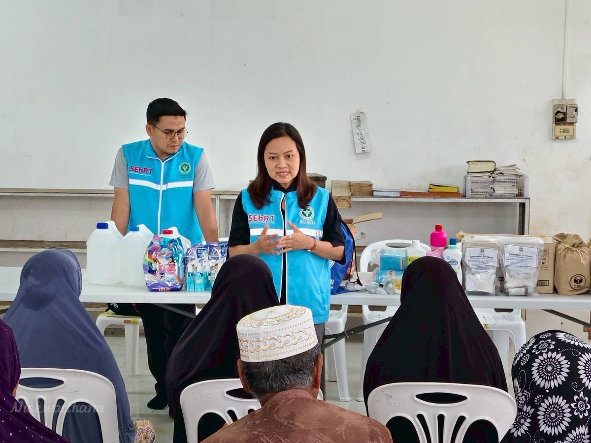 นายแพทย์นเรศฤทธิ์ ขัดธะสีมา รองอธิบดีกรมอนามัย กล่าวว่า เพื่อคืนพื้นที่ปลอดภัยให้ชาวหาดใหญ่ ทีม SEhRT กรมอนามัยยังคงเดินหน้าส่งเสริมสุขภาพประชาชนและให้คำแนะนำด้านสุขภาพ อาทิ การใช้น้ำสะอาดปลอดภัย การทำความสะอาดและฆ่าเชื้อพื้นผิว การดูแลบาดแผลอย่างถูกวิธี และการใช้ยาสามัญประจำบ้าน อย่างเหมาะสม เพื่อลดความเสี่ยงต่อโรคที่สัมพันธ์กับน้ำ อาหาร และสิ่งแวดล้อมหลังอุทกภัย รวมทั้ง สร้างความรอบรู้และสื่อสารความเสี่ยงด้านสุขภาพ ให้กับครอบครัว ครู ผู้ดูแล และผู้นำชุมชน เพื่อให้สามารถเฝ้าระวังอาการเจ็บป่วยของเด็กปฐมวัยและกลุ่มเปราะบางได้อย่างใกล้ชิด ให้สามารถเข้าถึงบริการสาธารณสุขได้อย่างทันท่วงที หากพบความผิดปกติ ส่งเสริมการมีส่วนร่วมของชุมชน การสร้างความรู้ความเข้าใจด้านสุขภาพ และเน้นการเตรียมความพร้อมรับมือสถานการณ์ในอนาคต เพื่อให้ประชาชนสามารถดูแลตนเองและชุมชนได้อย่างเข้มแข็งต่อไป