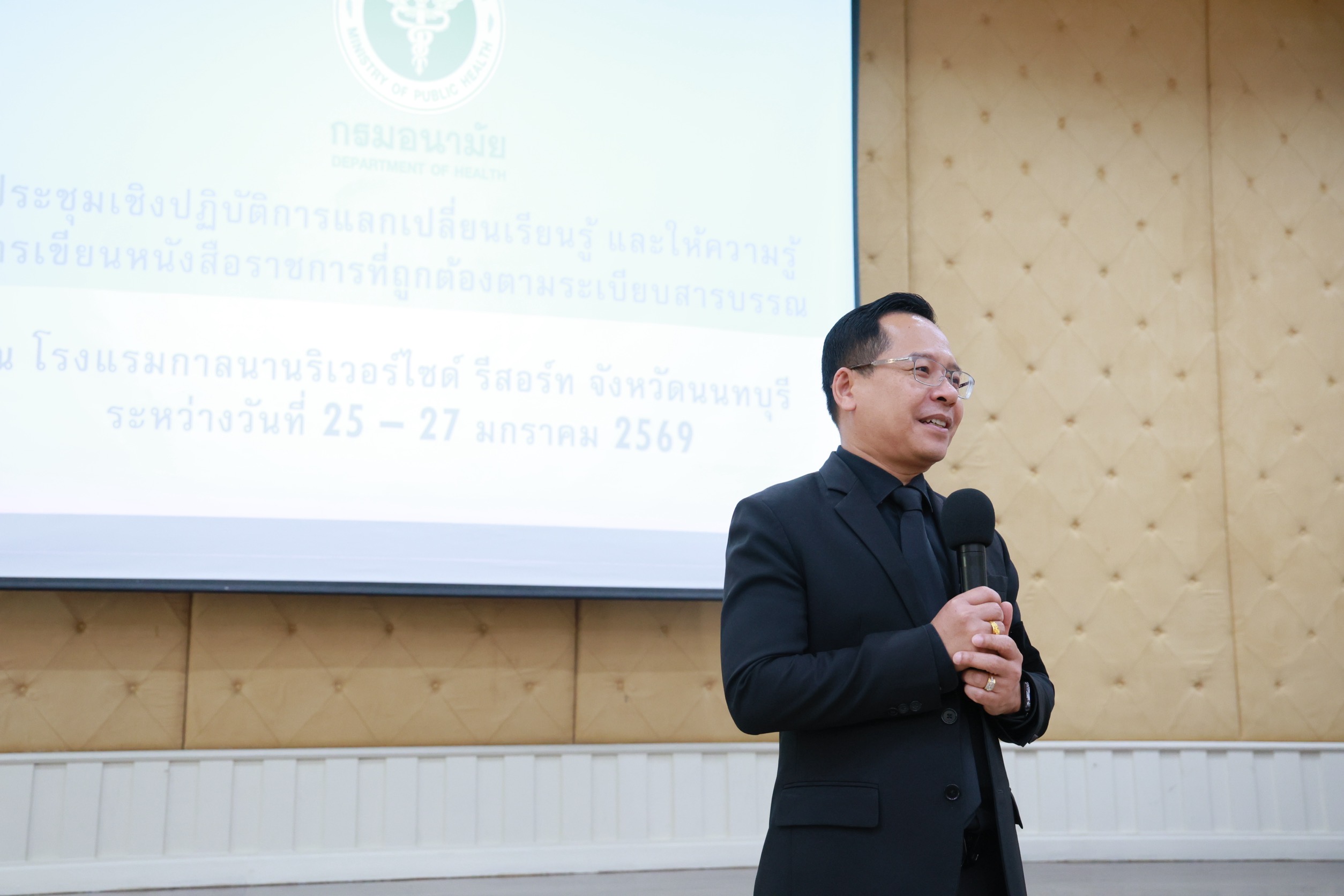 วันนี้ (27 มกราคม 2569) ดร.นายแพทย์ปองพล วรปาณิ รองอธิบดีกรมอนามัย เป็นประธานเปิดการประชุมเชิงปฏิบัติการแลกเปลี่ยนเรียนรู้ และให้ความรู้เรื่องการเขียนหนังสือราชการที่ถูกต้องตามระเบียบสารบรรณ โดยมี นายวินัย รอดไทร เลขานุการกรม กล่าวรายงาน ณ โรงแรมกาลนานริเวอร์ไซด์ รีสอร์ท จังหวัดนนทบุรี