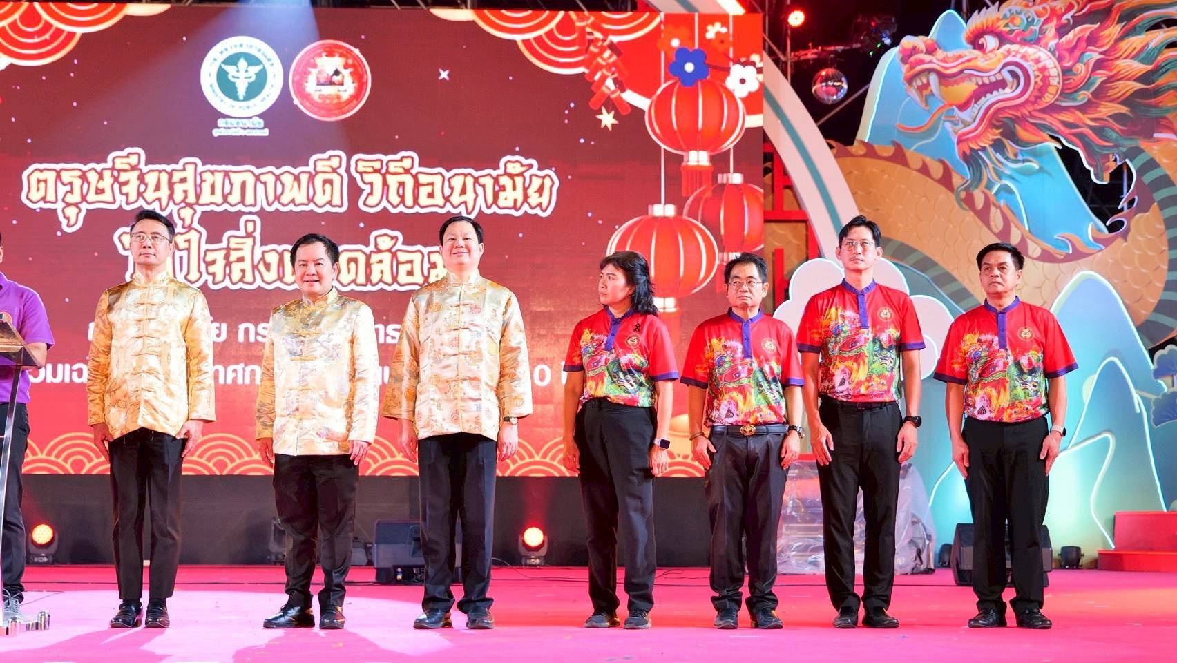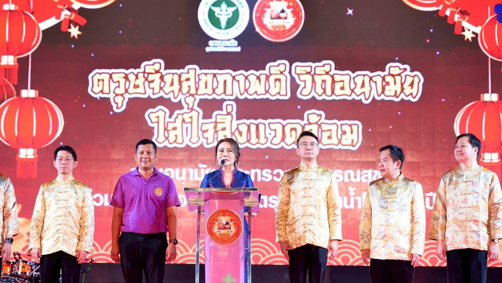 วันนี้ (17 กุมภาพันธ์ 2569) กระทรวงสาธารณสุข ลงพื้นที่รณรงค์เทศกาลตรุษจีนปากน้ำโพ 110 ปี จังหวัดนครสวรรค์ มอบป้ายมาตรฐาน SAN ให้ร้าน Food Truck ที่ผ่านเกณฑ์มาตรฐาน พร้อมย้ำการคัดแยกขยะ 3 ประเภท ลดการเผากระดาษเงิน กระดาษทอง ใช้ธูปขนาดสั้น เพื่อลดฝุ่น PM2.5 ณ บริเวณวัฒนธรรมไทย-จีน (ซอยศรีไกรลาส) บริเวณหาดทราย และเวทีวัฒนธรรมเทศกาลตรุษจีนปากน้ำโพ 110 ปี เทศบาลนครสวรรค์ จังหวัดนครสวรรค์ โดยมี นางสาวจิตศ์ตราฎ์ หมีทองธนกรณ์ เลขานุการรัฐมนตรีว่าการกระทรวงสาธารณสุข เป็นประธาน พร้อมด้วย นายแพทย์เอกชัย เพียรศรีวัชรา รองปลัดกระทรวงสาธารณสุข ดร. นายแพทย์อดิสรณ์ วรรธนะศักดิ์ ผู้ตรวจราชการกระทรวงสาธารณสุข เขตสุขภาพที่ 3 ดร.นายแพทย์ปองพล วรปาณิ รองอธิบดีกรมอนามัย นายแพทย์ปกรณ์ ตุงคะเสรีรักษ์ รองอธิบดีกรมอนามัย และผู้บริหารกระทรวงสาธารณสุข ร่วมงาน